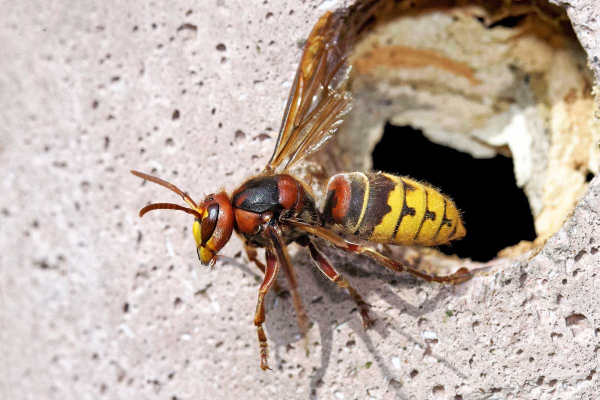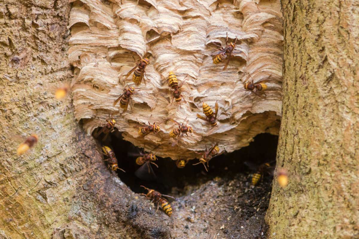 Contrairement à son cousin asiatique, le frelon européen préfère l’obscurité. Ses nids sont cachés dans les troncs d’arbres, les granges, les combles ou les volets roulants. Impossible donc de les apercevoir à l’air libre : ils restent dissimulés dans leur cavité. Leur ouverture est large et orientée vers le bas, et il est parfois possible d’apercevoir les larves à travers l’entrée. La Ligue de protection des oiseaux (LPO) détaille dans un excellent tutoriel les signes distinctifs entre les deux espèces. Elle y rappelle aussi que le frelon européen, malgré sa taille, est beaucoup moins agressif que son homologue venu d’Asie, à condition qu’on ne s’approche pas trop de son nid.
