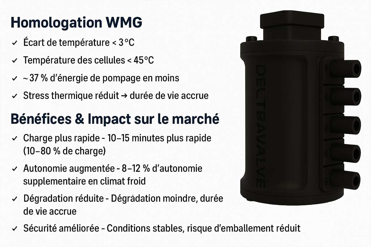 Pour évaluer l’efficacité de la Dectravalve, Hydrohertz a procédé à des tests au département de recherche WMG (Warwick Manufacturing Group) de l’université de Warwick. L’entreprise a décidé d’installer son dispositif sur une batterie LFP (lithium-fer-phosphate) et de la recharger rapidement. Durant le processus, elle a remarqué que la cellule la plus chaude a atteint 44,5 °C et la différence de température dans l’ensemble de la batterie n’a été que de 2,6 °C. Par ailleurs, elle a estimé que l’utilisation de son système de gestion thermique permet de diminuer le temps de charge de 68 %. Il est donc possible de réduire à 10 minutes une session qui devrait durer 30 minutes. À noter que lors d’une recharge rapide, les batteries classiques de VEB peuvent atteindre 56 °C, une température trop élevée qui réduit la puissance des cellules et augmente le temps de charge.