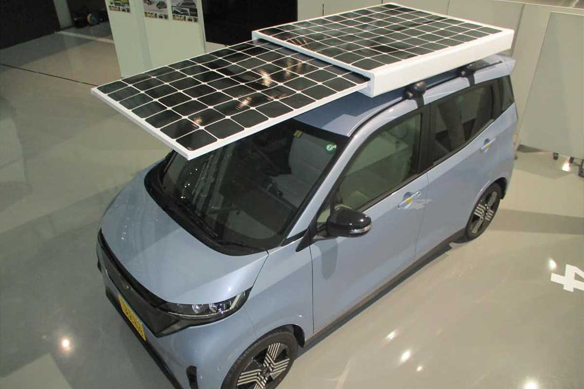 Une Sakura Kei garée avec son panneau solaire de toit déployé.