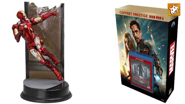 Attention tentation, alors que le film ne sort que demain, Amazon propose déjà un coffret qui va en ravir plus d’un. Le . Coffret prestige Iron Man 3 comprend : Blu-ray + Blu-ray 3D + Une statuette à monter du plus bel effet. L’’armure présentée est la Mark VII en mode combat. Il semblerait que celle-ci soit édité par Dragons models ce qui semble être un gage de qualité. Le fabricant indique que c’est une édition limitée à 999 exemplaires. Cette pièce est vendue 120$ (environ 90€) l’unité. La statuette à l’échelle 1/9 ème (Une trentaine de centimètres) est à monter soit même (système de clip-sage ou emboîtement enfin vous voyez le genre).
