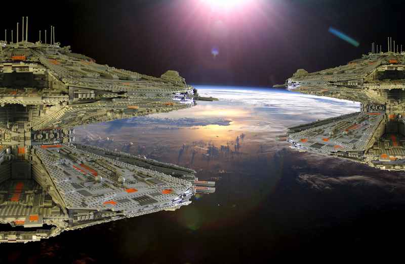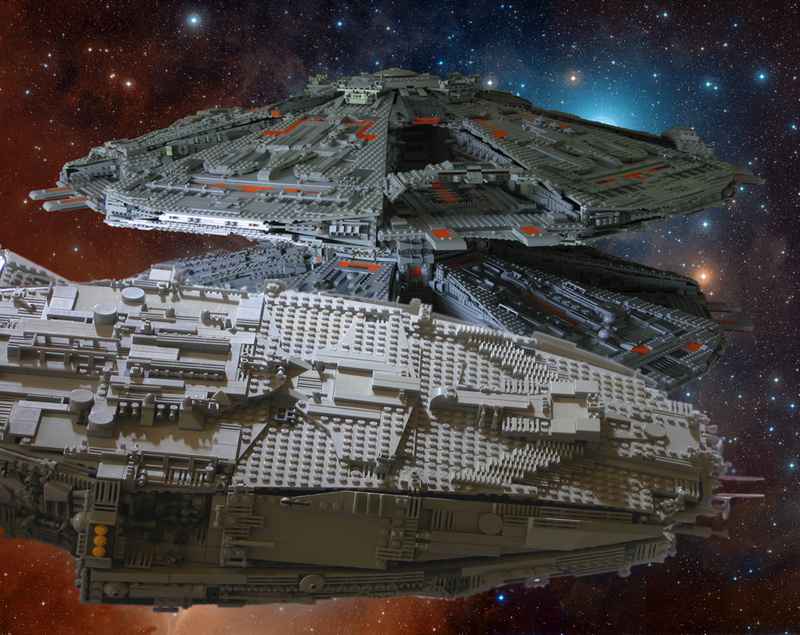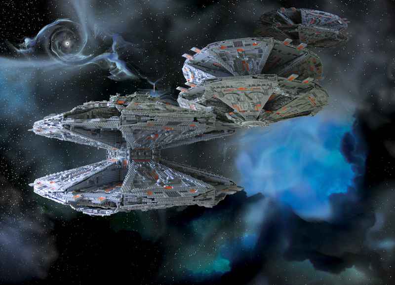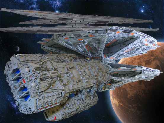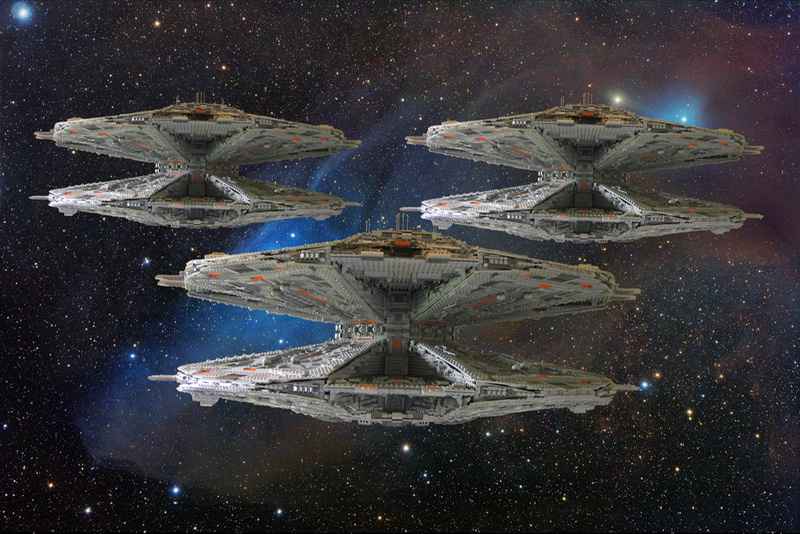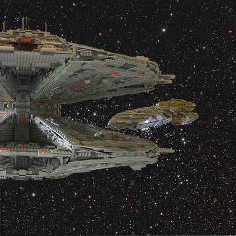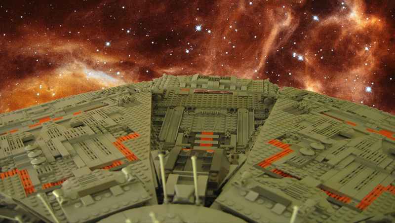 Garry King vient de terminer sa base Cylon de la série Battlestar Galactica. Il aura fallu 23 606 pièces de Lego pour un poids avoisinant les 23kg. Une belle bête.