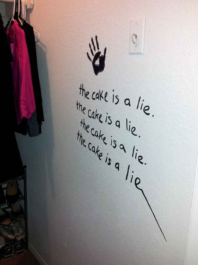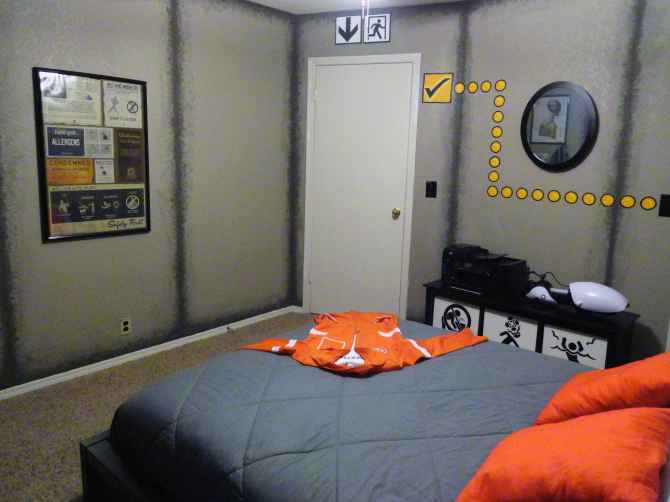 Les tags dans le placard, les portails de téléportation, les panneaux de signalisation, une chambre à coucher avec de nombreuses références très fidèle à l’univers du jeux-vidéo.