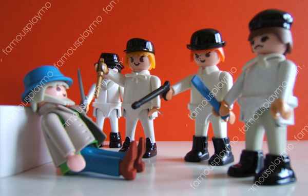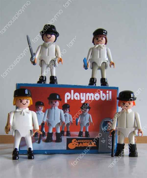 En avant les histoires ! Playmobil,c’est juste les figurines ultimes avec les Lego. J’avoue que j’ai eu beaucoup de Playmobil quand j’etais gosse et ces petits personnes à la coupe de cheveux mireille mathieu m’ont toujours plus. Depuis 2011, Famousplaymo réalise et peint à la demande des playmo du thème de votre choix. On est bien loin des cowboy et des indiens ordinaires ! Voici un petit florilège passant par Orange Mécanique, Shining, l’Exorciste ou encore Alien. Ou sinon il y a Retour vers le Futur, star wars ou Albator. Bref que du bon !