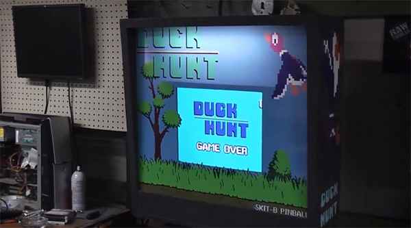 Kevin Kulek alias Skit-B a transformé un flipper électromécanique Williams Valiant sur le thème de Duck Hunt. Le jeu vidéo de tir au pistolet développé et édité par Nintendo en 1985 sur NES.