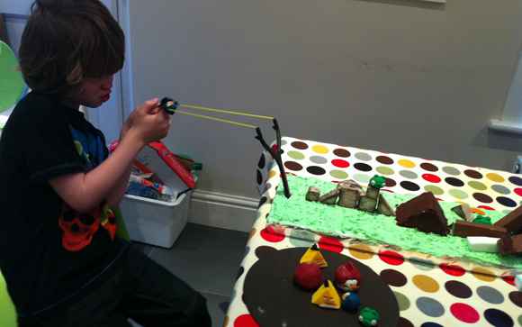 Imaginez la surprise de Ben quand ses parents lui ont offert une version Irl et comestible du jeu Angry Birds pour son sixième anniversaire. C’est quelque chose qui m’aurait bien fait sauter en l’air ce genre de cadeau quand j’étais môme. Ouai je sais… il n’y avait pas de Smartphone dans les années 80… 😐 (quelques photos et une vidéo dans la suite)