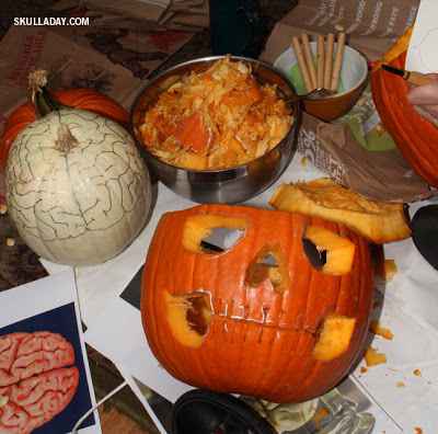 L’artiste et designer Noah Scalin du site Skull-A-Day a réalisé un tutoriel détaillé pour faire une lanterne d’Halloween qui en jette un max ! Oubliez les lanternes basiques avec la bougies dans la citrouille sommairement découpée. Voici de quoi réaliser une vraie Jack-O-Lantern qui a son petit effet pour Halloween ! Vous aussi découvrez les entrailles de jack ! Quel bonheur de voir l’obscurité murmurer ses ombres à la lanterne disposée devant votre porte ou votre fenêtre en préparation du 31 Octobre !