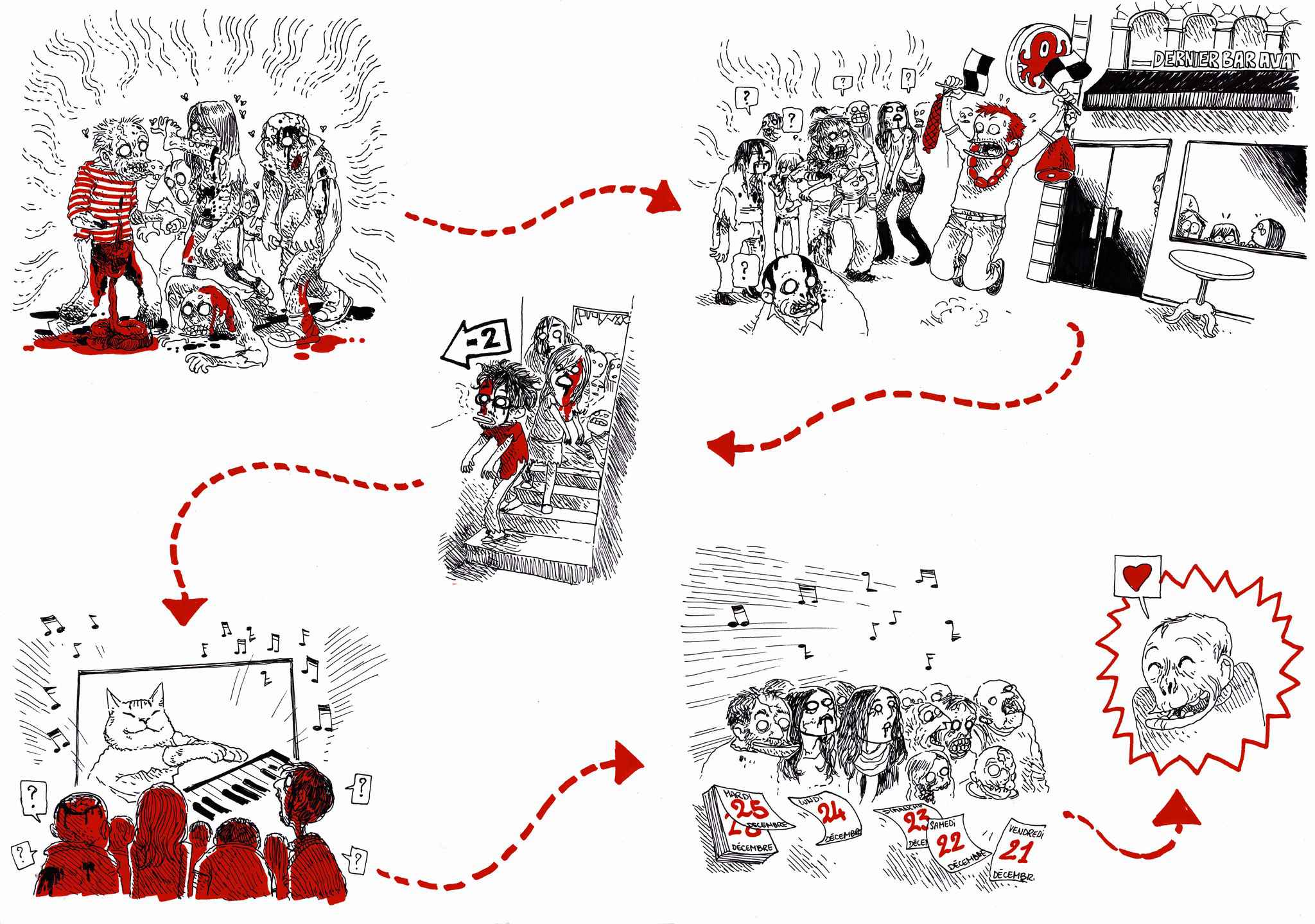Il était une fois trois jeunes geeks qui avaient décidé de passer inaperçu dans la vraie vie. Mais on le savait cantonnés à des rôles assez peu passionnants. Alors moi, le Dernier Bar, je les ai sortis de ce cauchemar pour les lancer dans de folles aventures. Et je ne le regrette pas, car ce sont vraiment de Drôles de geeks ! (comme les drôles de dames mais en mieux). Laverne aime les jeux vidéos, Hoagie est un fou de séries télés et Bernard est tombé dans le jeu de rôle quand il était petit. Bref, trois geek à peine plus barrés que la moyenne, le regard tourné vers les mondes imaginaires, tous les 3 sont des habitués du Dernier Bar avant la Fin du Monde. Ensemble, ils vont sauver le monde ! Enfin peut-être…