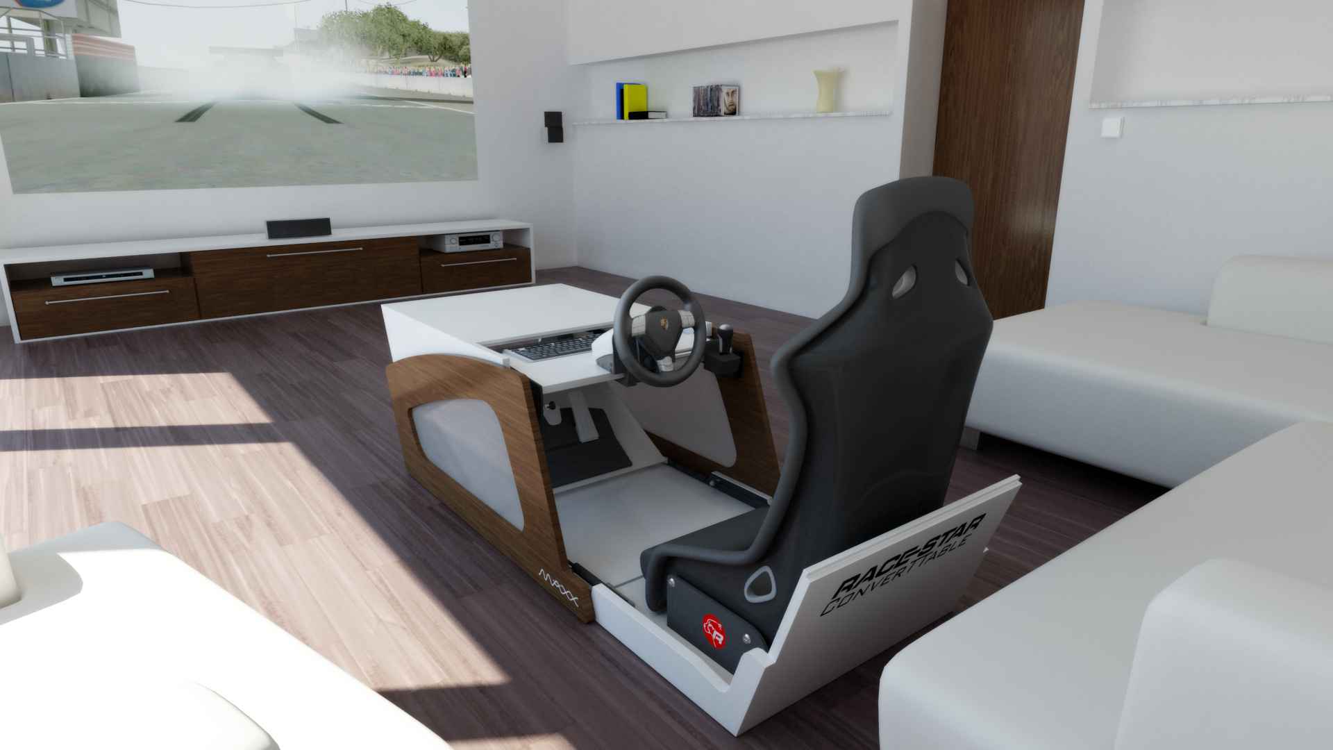 Race Star à trouver la solution en fusionnant une table basse avec un simulateur, un peu comme les canapés convertibles. Celui-ci est réglable et pour toutes les tailles.