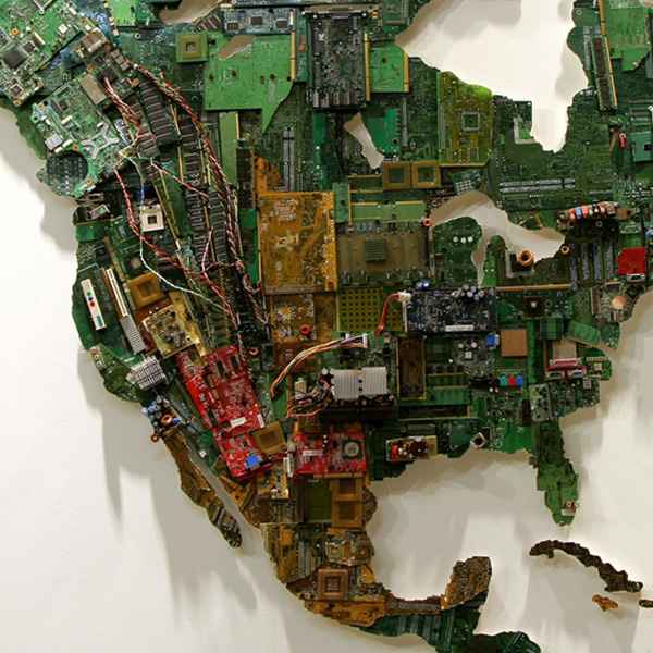 Ce n’est pas la première fois qu’un artiste utilise des composants d’ordinateurs, rappelez-vous du mobilier de BRC Desings, conçu avec des cartes mères et diverses pièces informatiques.