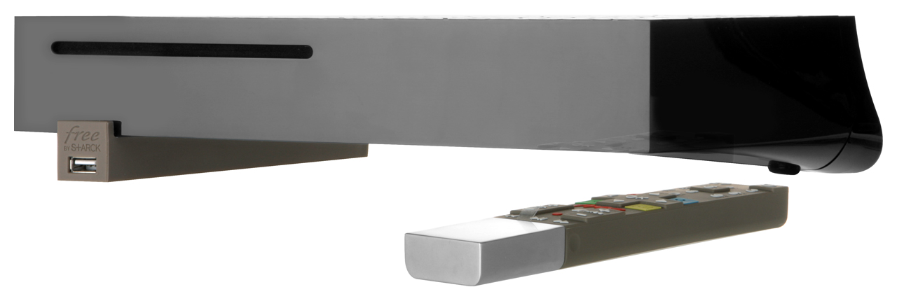 Le design de la Freebox a été confié à Philippe Starck et effectivement il y a du changement de ce côté-la. Que l’on aime ou que l’on n’aime pas, l’aspect ne laisse pas indiffèrent et ce n’est pas plus mal. Ces appareils font partie de notre quotidien et de nos foyers et Il est temps que les boxs, routeurs, boîtiers téléphoniques et autres machines ressemblent à autre chose qu’à des briques superposés les une par-dessus les autres, multipliant connexions, alimentations et éclairages à la sapin de noël. Ici la Freebox s’emboite avec son module de façon homogène ce qui est plutôt pratique et esthétique.