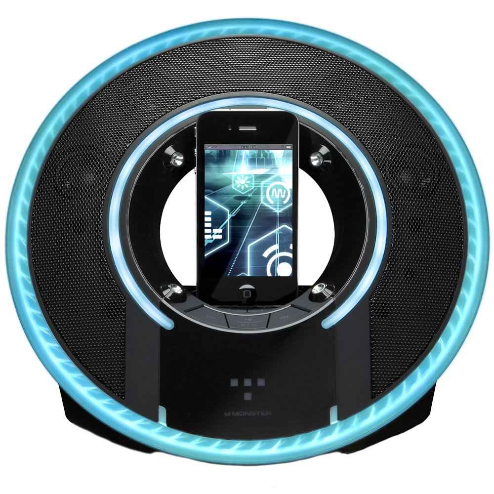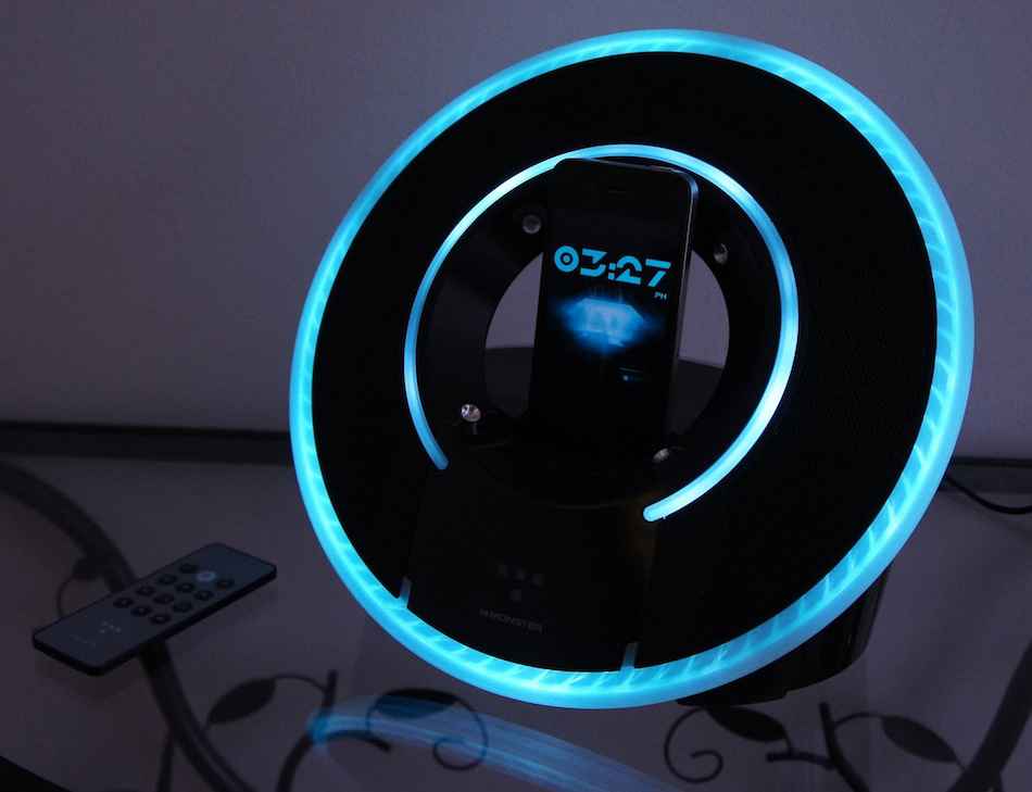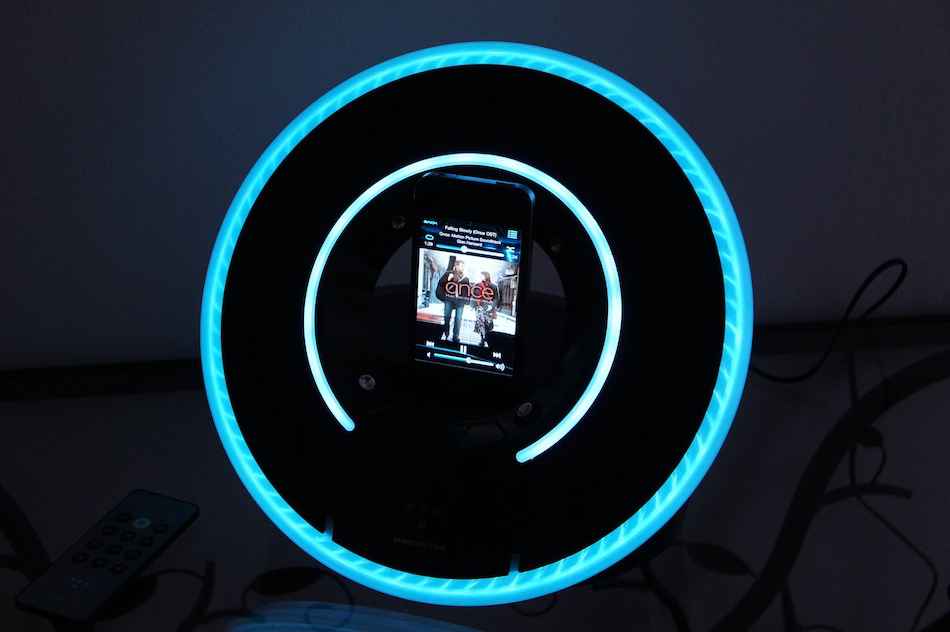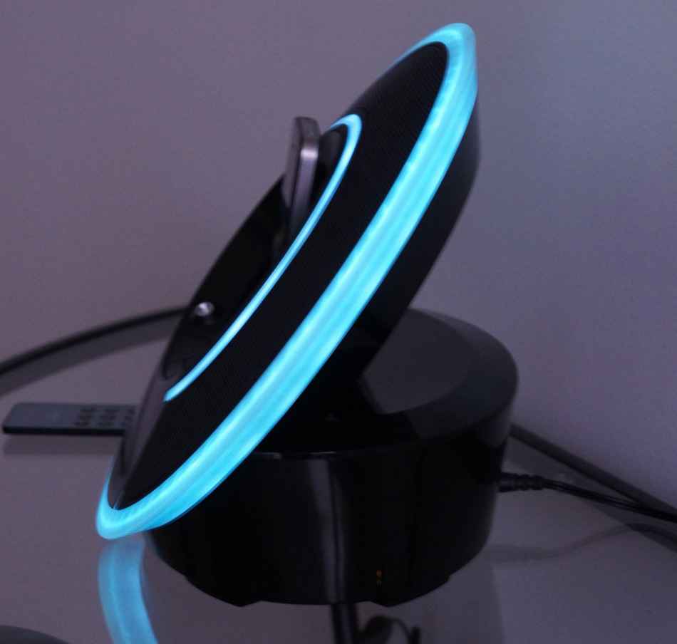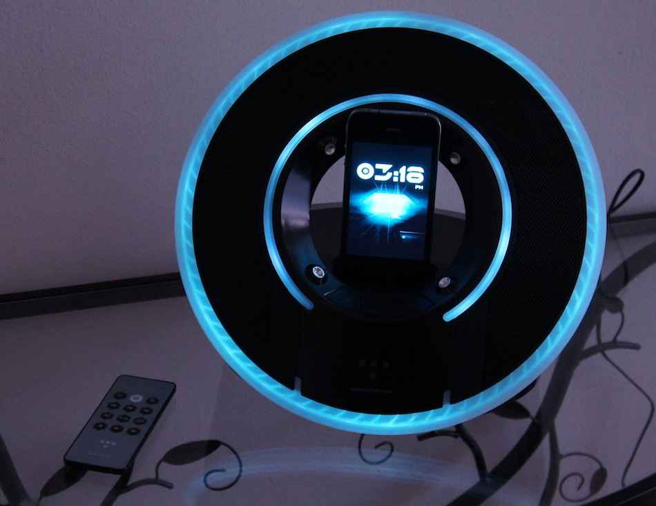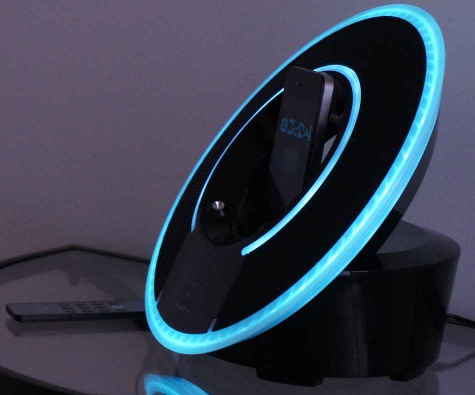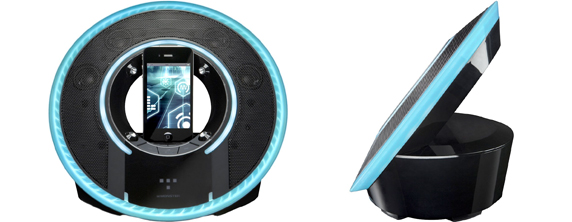 Dans la série des produits dérivés de Tron, je vous présente le dock pour iPod et iPhone. Le design est très sympa et très ergonomique, Les enceintes et l’éclairage à l’air de bonne qualité comme on peut le voir dans la vidéo, vous y insérez votre iDevice au centre du disque que vous pouvez piloter avec une télécommande. Ce petit joujou ne vous coûtera que 299.95$ au lieu de 349.95$ (promo) ce qui reste bien excessif pour un dock. On se demande ce qui est le plus cher, la technologie ou les droits du film…