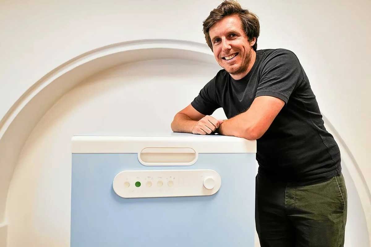 Le fondateur de EverEver Martin Hacpille et son prototype de lave-vaisselle réparable. Crédit photo : Alexandre Hacpille