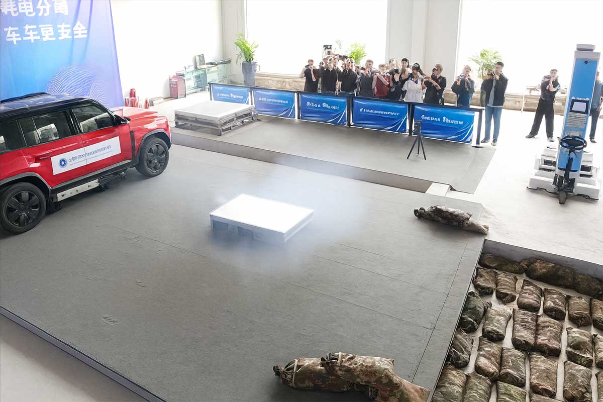 Les batteries des véhicules électriques sont, pour la plupart, composées de cellules au lithium-ion. En cas d’emballement thermique, cela peut provoquer un enchaînement de réactions qui augmente considérablement les risques d’incendie. Étant donné leur emplacement dans le véhicule souvent logées, voire, emprisonnées , il est difficile d’éteindre un feu une fois qu’il se déclenche. C’est pour pallier ce problème que le Chinese Vehicle Collision Repair Technical and Research Center (CVCRTC) a développé ce fameux système. Il permet d’expulser une batterie en feu en pleine conduite, à une distance de 3 à 6 mètres du véhicule. L’avantage principal est de sauver la vie des occupants de l’habitacle. Ce dispositif s’attaque donc au principal défi de sécurité lié aux véhicules électriques. La vidéo de démonstration a fait le buzz, preuve que cette solution a de quoi surprendre.