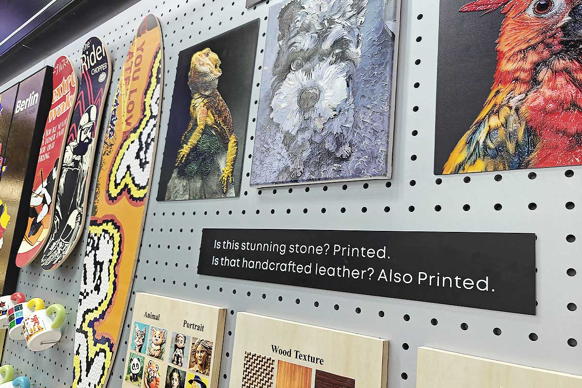 Quand on pense « imprimante », on imagine immédiatement un appareil qui se bloque au moment crucial, avec le fameux message « bourrage papier ». Je crois que les imprimantes classiques, à papier, sont mes pires ennemies dans mon environnement professionnel. Lors de ma visite à l’IFA, j’ai enfin découvert l’eufyMake E1, et c’est une autre galaxie ! Je dirai qu’elle porte le nom d’imprimante, mais qu’elle n’a rien à voir avec celle qui imprime du papier ou quelques photos à la rigueur ! Elle est proposée à partir de 1 625 €, et cette machine ne se contente pas d’imprimer sur du papier. Non, elle crée des textures en 3D jusqu’à 5 mm d’épaisseur sur du bois, du cuir, du métal, voire votre mug préféré. Une technologie qui repose sur l’impression UV, une méthode qui utilise une encre à polymérisation UV qui durcit immédiatement au contact de la lumière. Par ailleurs, nous avions déjà eu l’occasion de vous en parler dans cet article publié en juin dernier, où elle explosait les records de financement participatif sur Kickstarter. Mais, à l’IFA de Berlin, j’ai pu la voir en action, et croyez-moi : le résultat est encore plus bluffant en vrai qu’en chiffres. Découverte.