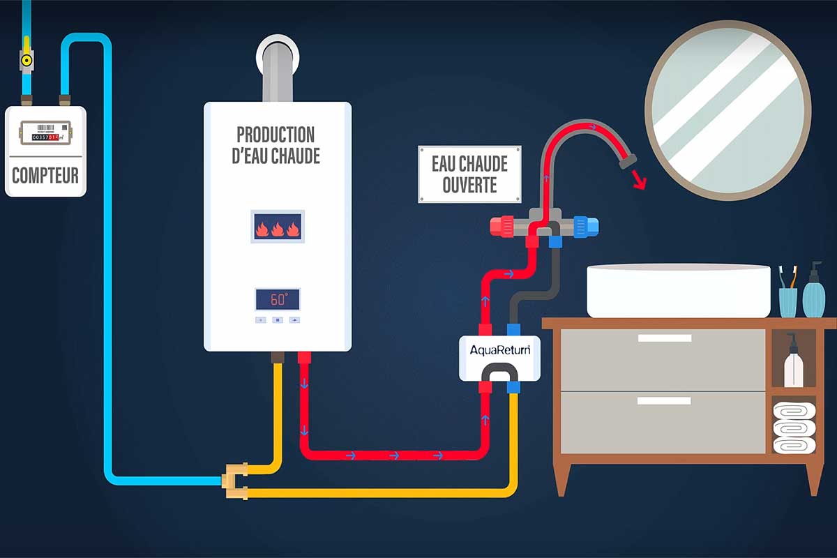 Tous les moyens sont bons pour faire du bien à la planète, et l’un des plus intelligents est d’utiliser l’eau, une de ses ressources les plus importantes, sans gaspillage. Le simple fait d’empêcher l’eau froide de couler en attendant qu’elle atteigne la bonne température avant chaque utilisation est déjà une victoire. Et cette petite victoire, vous pouvez la gagner au quotidien avec AquaReturn. Ce petit gadget, dont le nom signifie littéralement « retour d’eau », est distribué en France par LBEM depuis 2024. On vous présente ce mini-appareil à installer sur vos systèmes d’eau chaude et froide.
