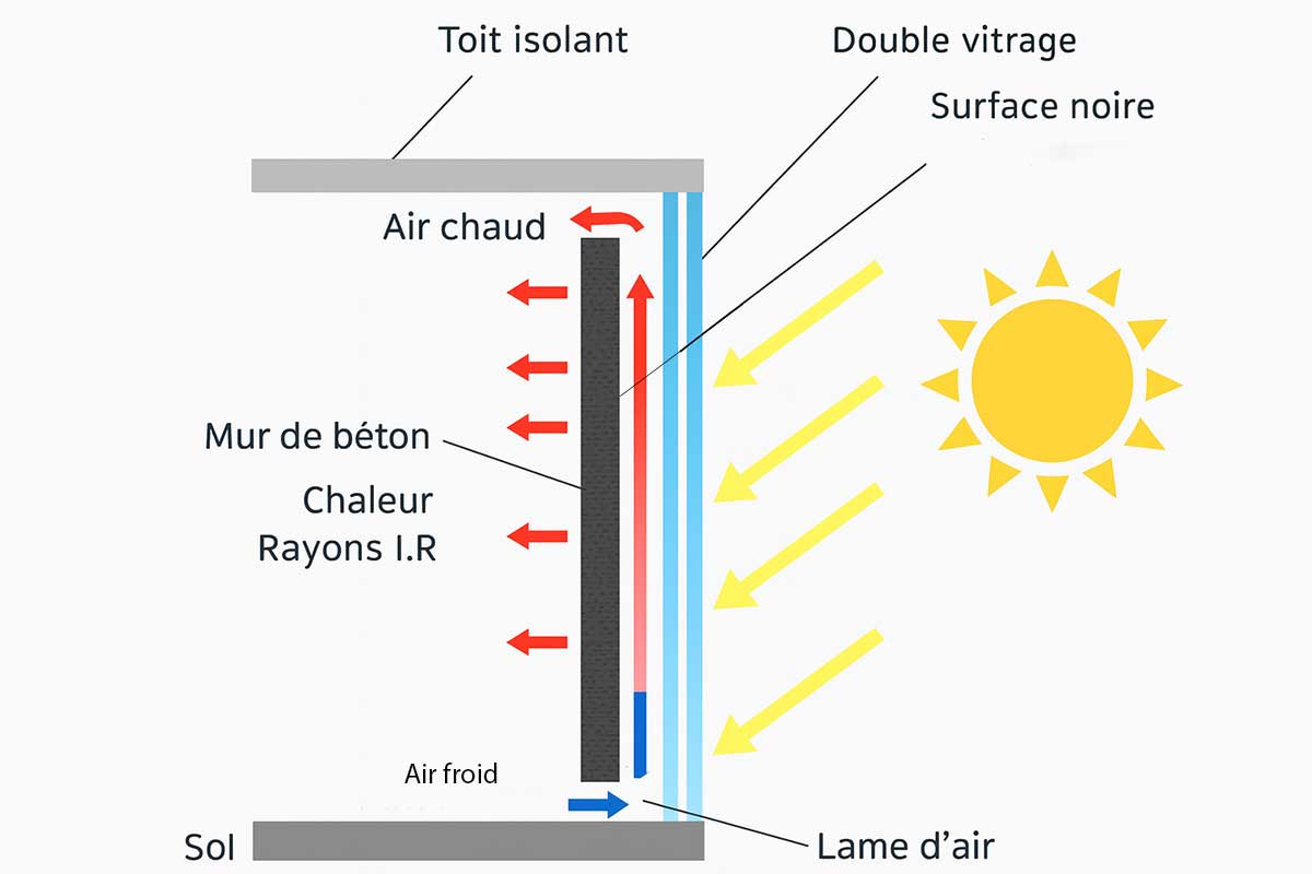 Le schéma du mur trombe est faux : le soleil doit être du coté du vitrage !