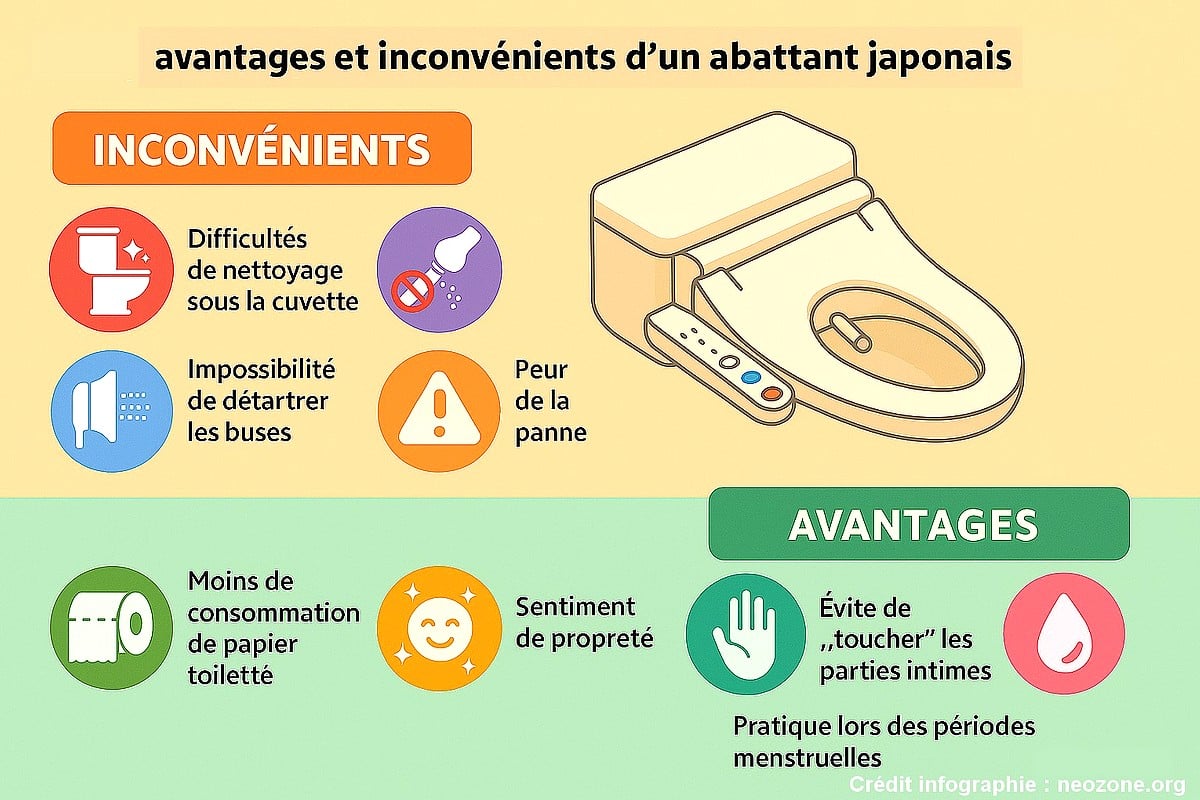Et, contrairement à ce qu’on imagine, la consommation d’eau reste raisonnable : environ 150 ml par lavage, loin des litres gaspillés par la fabrication du papier toilette. Finalement, les toilettes japonaises ne sont pas une fantaisie gadget. Pourtant, c’est un réel changement de confort de vie, si tant est que l’on dépasse la « barrière psychologique ». Alors, oui, les toilettes japonaises ont leurs petits défauts, parfois agaçants, souvent amusants, mais elles transforment le passage aux toilettes en moment presque… zen. Et vous, seriez-vous prêt à adopter un abattant japonais malgré ses petits caprices pour profiter d’un confort à la japonaise ? Une réaction, un retour, une anecdote à partager ? Cliquez ici pour publier un commentaire . On lit tout avec attention ! Une erreur s’est glissée ? Vous pouvez également nous en faire part !