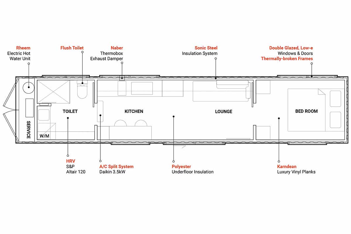 | Design fonctionnel | Maison container de 50 m² sur un seul niveau | Accessible à tous, même aux seniors |