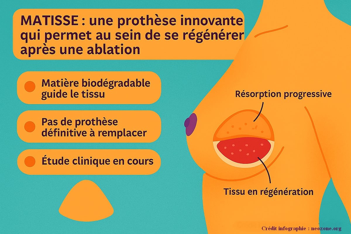 J’ai toujours admiré ces innovations qui marient technologie et humanité. Celle-ci en est un parfait exemple. En redonnant la possibilité à une femme de retrouver sa poitrine sans silicone, sans intervention lourde, MATTISSE ne soigne pas seulement un corps, elle répare aussi une part de soi. Cette invention française, encore en phase d’essai, ouvre la voie à une reconstruction plus naturelle, plus personnelle et plus respectueuse du corps féminin. Et, si, demain, ces bioprothèses devenaient la norme, permettant à chaque femme de se reconstruire à son rythme, avec son propre tissu ? Et vous, pensez-vous que la prothèse MATTISSE pourrait révolutionner la reconstruction mammaire après un cancer du sein ? Alors, que pensez-vous de cette solution ? Dites-le-nous en commentaire : cliquez ici pour publier un commentaire . Une erreur s’est glissée ? Vous pouvez également nous en faire part !