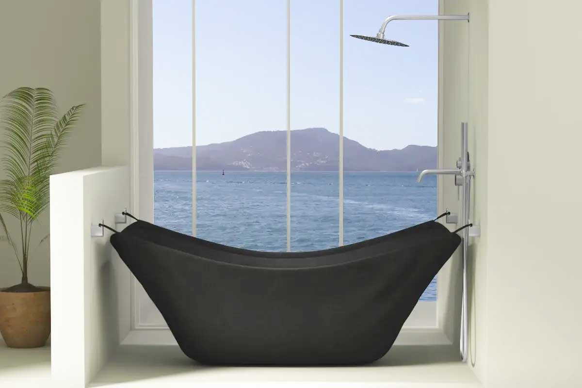 Une baignoire hamac qui s'installe dans de petits espaces.