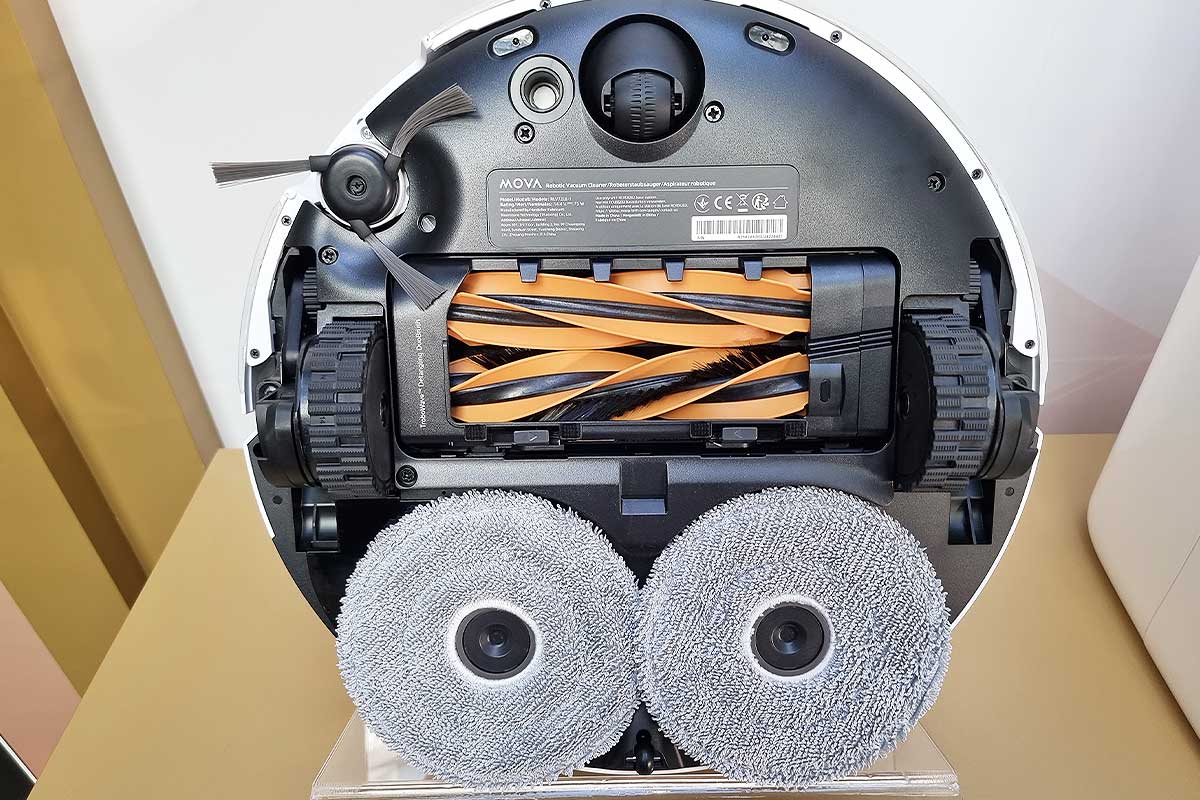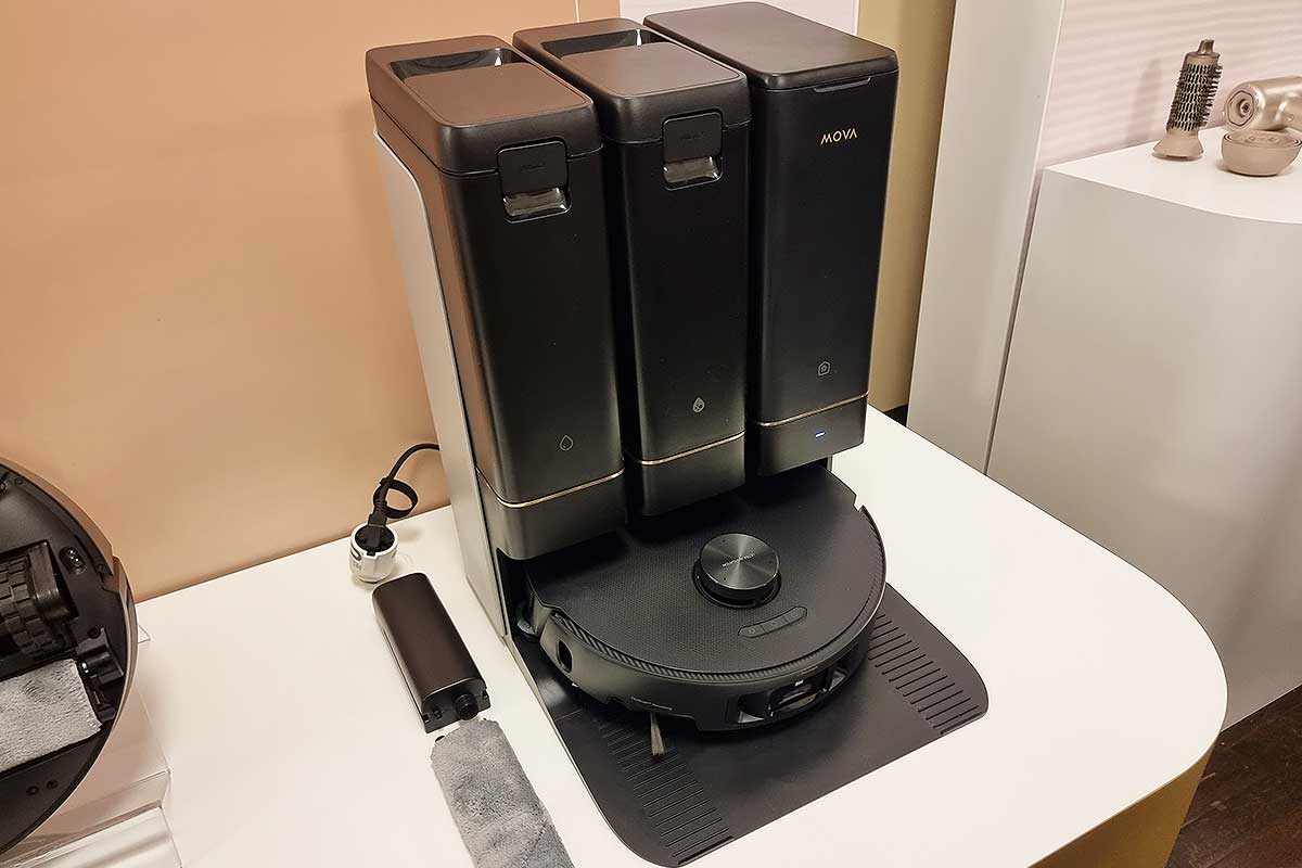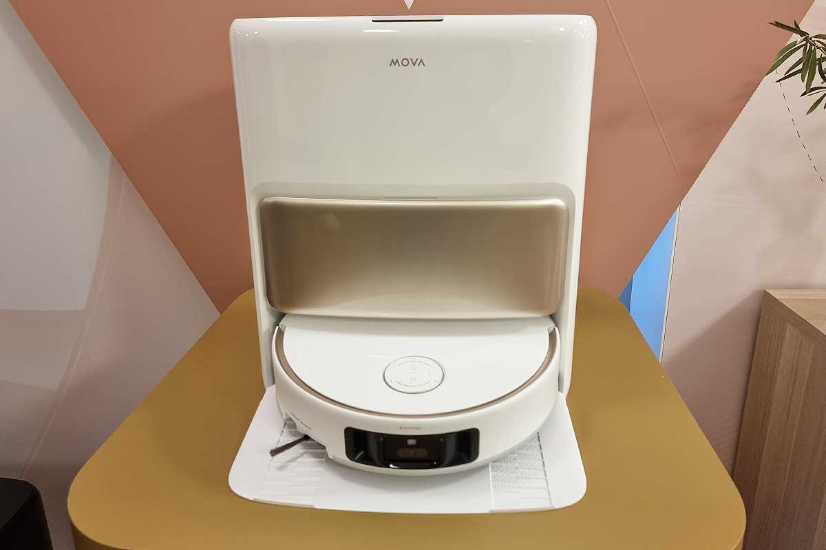 Dans l’euphorie berlinoise, on aurait presque oublié que le MOVA Z50 Ultra existe lui aussi. Et, qu’il n’a pas à rougir face à son grand frère. Proposé à 1 199 €, le Z50 Ultra brille par sa puissance d’aspiration de 19 000 Pa, un lavage à l’eau chaude à 36 °C, et une autonomie de 155 minutes. Ce modèle se démarque par son système de brosses haute efficacité et sa serpillière déportée, idéale pour nettoyer efficacement les bords et les angles. Il adapte aussi sa puissance d’aspiration sur les tapis, et propose une cartographie 3D extrêmement précise grâce à une technologie caméra + laser. Il possède un réservoir d’eau propre de 4,5 L, un sac à poussière de 4 L et une station de charge autonome capable de vidanger, remplir, nettoyer et sécher automatiquement.