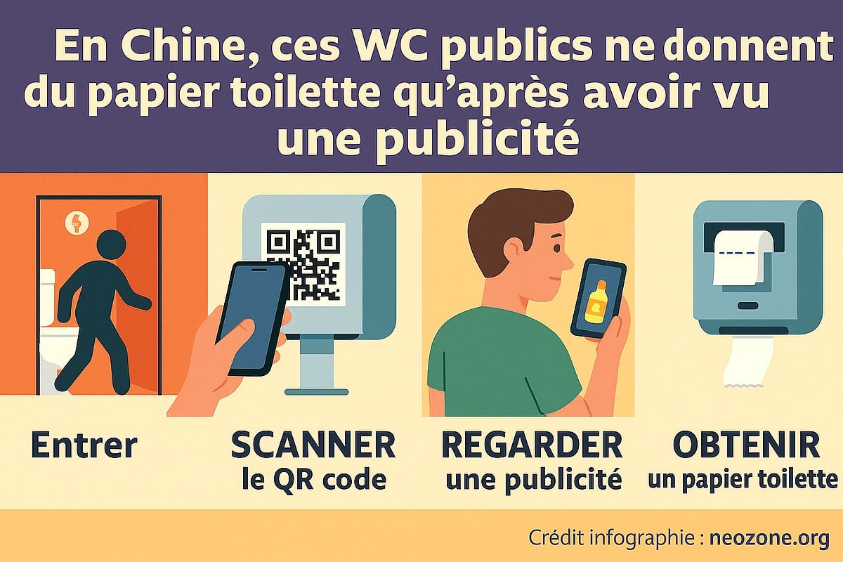 Il existe des inventions dont on se demande pourquoi elles existent ! Tout est subjectif bien entendu, mais pour celle que vous allez découvrir, c’est la première idée qui m’est venue à l’esprit ! Comment appeler cela ? Allez, disons que c’est une innovation que personne n’avait vraiment réclamée ! En Chine, certaines toilettes publiques obligent désormais les usagers à regarder une publicité ou à payer quelques centimes pour obtenir quelques feuilles de papier toilette. Le concept, mis en avant sur les réseaux sociaux et relayé par Futurism, repose sur une idée simple : « Toilet paper is a public resource. We need to prevent waste. » Autrement dit, « le papier toilette est une ressource publique, il faut éviter le gaspillage. » Je veux bien, moi, qu’on parle écologie, mais là, on frôle surtout l’absurde… Parce que si je n’ai pas de smartphone, ou si la situation presse un peu trop (on se comprend), je fais comment ? Sans compter que, pour ma part, ce genre de dispositif pourrait encourager le retour des lingettes jetables, bien plus polluantes à long terme. Décryptage de cette drôle d’invention chinoise !