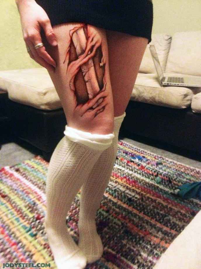 Jody Steel est une étudiante de talent (en tout cas en dessin). Etudiante à l’Emerson College de Boston, elle occupe son temps en dessinant sur sa cuisse pendant que les cours se passent. Art et sexy à la suite de l’article !