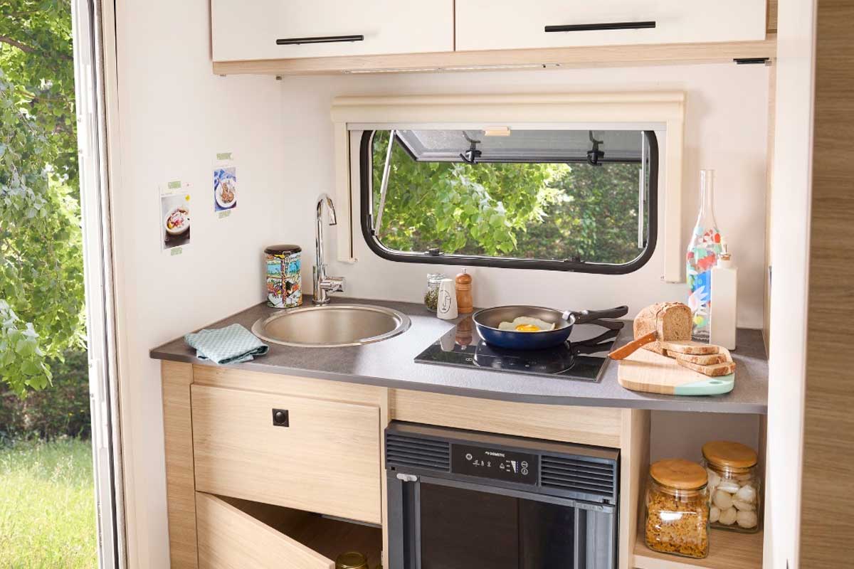 Si ces petits modèles séduisent autant, ce n’est pas que pour leur prix, souvent attractif : moins de 15 000 € ici… Elles séduisent aussi, car elles sont plus maniables, plus faciles à tracter avec une voiture moyenne, et non pas un puissant 4 × 4 ou un fourgon, comme ce peut être le cas pour de grands modèles ! Petit bémol pour notre Alba 350, il faudra tout de même obtenir un permis BE, car son poids total à vide dépasse de peu les 750 kg réglementaires ! Il faudra suivre une formation de sept heures pour obtenir le permis B96, comme expliqué sur le site du Service Public. Enfin, elles ont les faveurs des nomades, car elles se faufilent partout ou presque, contrairement aux mastodontes des années 1980 ! Un petit tour à l’intérieur s’impose !
