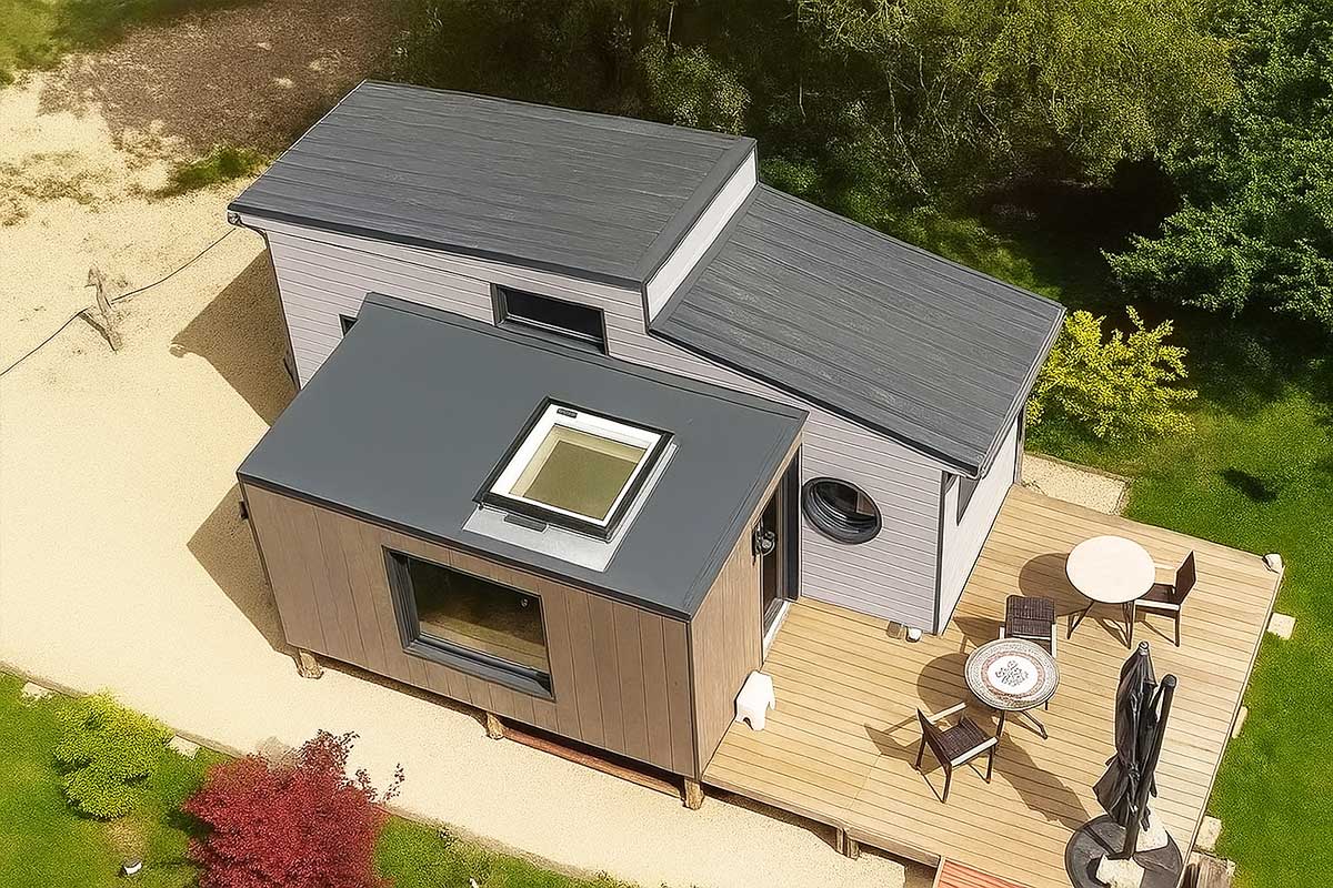 Sur la vidéo partagée par Tibi House, on découvre la tiny house originelle, déjà pleine de charme, accueillant désormais un second module relié par une terrasse en bois. L’ensemble forme un espace harmonieux et lumineux, où chaque détail semble pensé pour le bien-être. Le nouveau module, monté sur remorque, s’intègre parfaitement à la structure principale grâce à un bardage assorti et une grande baie vitrée qui inonde l’intérieur de lumière naturelle. Sur le toit, un puits de lumière vient parfaire cet équilibre, tandis que la terrasse aménagée invite à profiter des beaux jours. Chez Tibi House, artisanat et ingénierie s’allient pour donner vie à des habitats modulables et élégants. Chaque extension, chaque assemblage est pensé comme un puzzle sur mesure, aussi esthétique que fonctionnel.