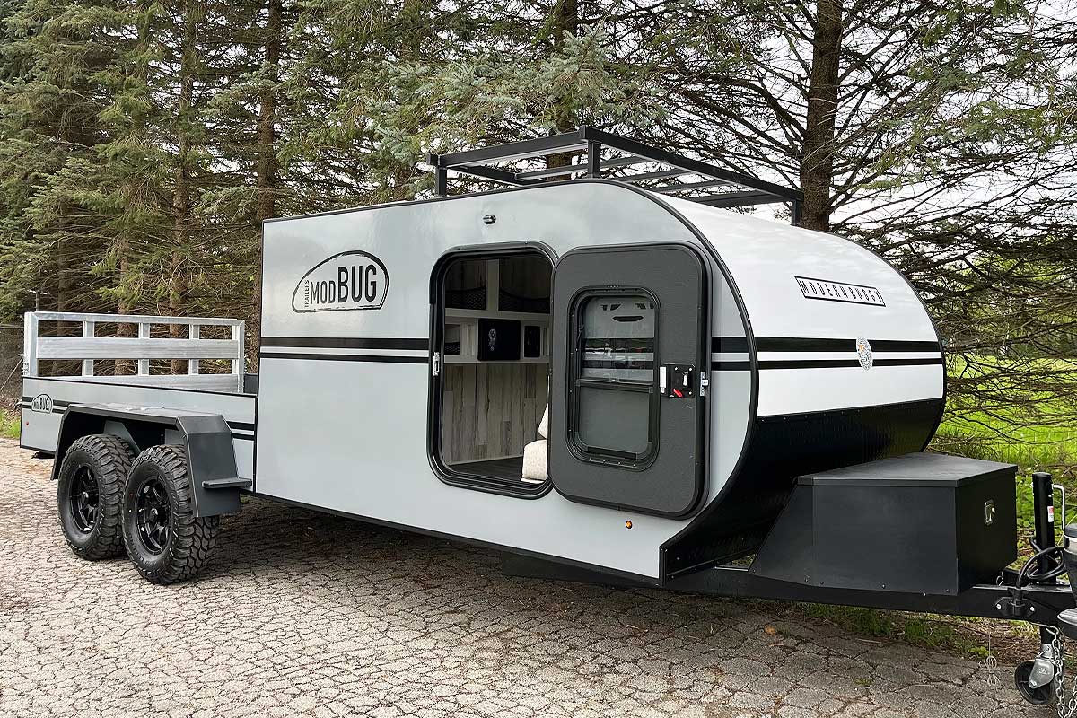 Si vous pensiez avoir tout vu dans le monde des véhicules de loisirs, détrompez-vous. L’UH18 est une drôle de créature roulante : moitié remorque plateau pour embarquer vos « jouets motorisés », moitié mini caravane pour y dormir comme à la maison. Son module de vie avant reprend la structure des teardrop trailers chers à Modern Buggy, avec un lit XXL convertible en canapé, une isolation composite sans bois, et même un panneau solaire de 200 W pour l’autonomie énergétique. L’arrière, quant à lui, se transforme en zone de chargement de plus de 3,3 m de long, capable de transporter un quad, une moto ou même un petit buggy. Une mini caravane qui combine confort et utilité pour les plus baroudeurs d’entre nous !
