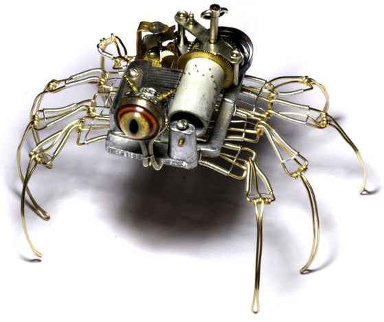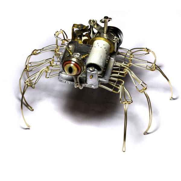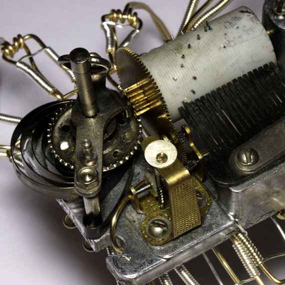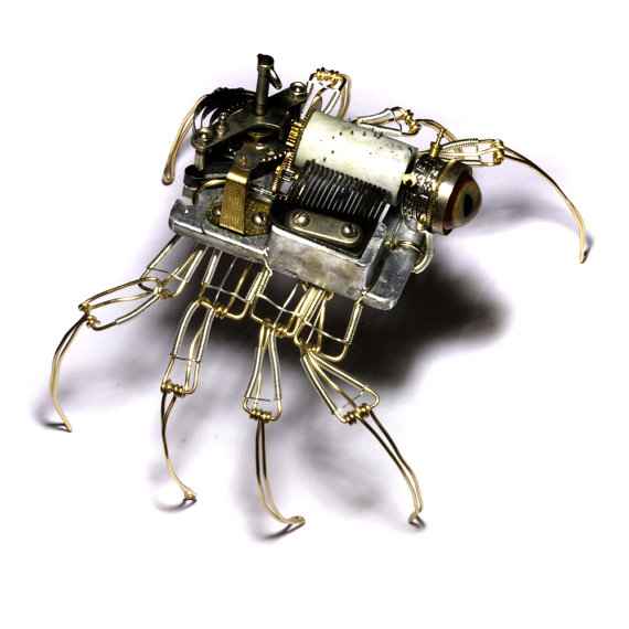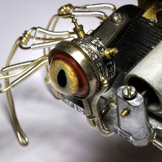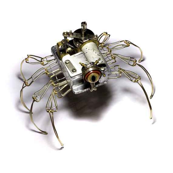 Sympa cette petite araignée steampunk, son corps a été construit avec une boite à musique et son œil avec une pièce de taxidermie.