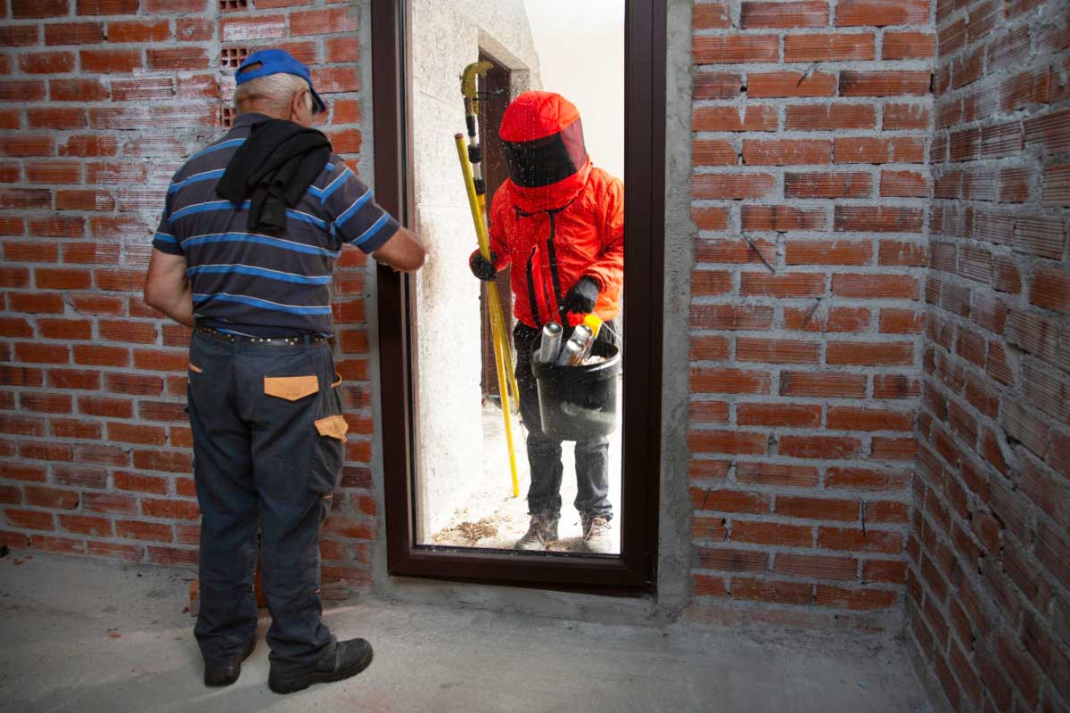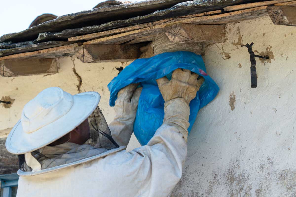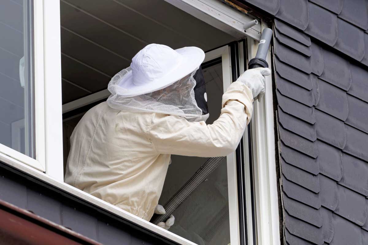 Un professionnel intervient pour un nid derrière une paroi exterieure.