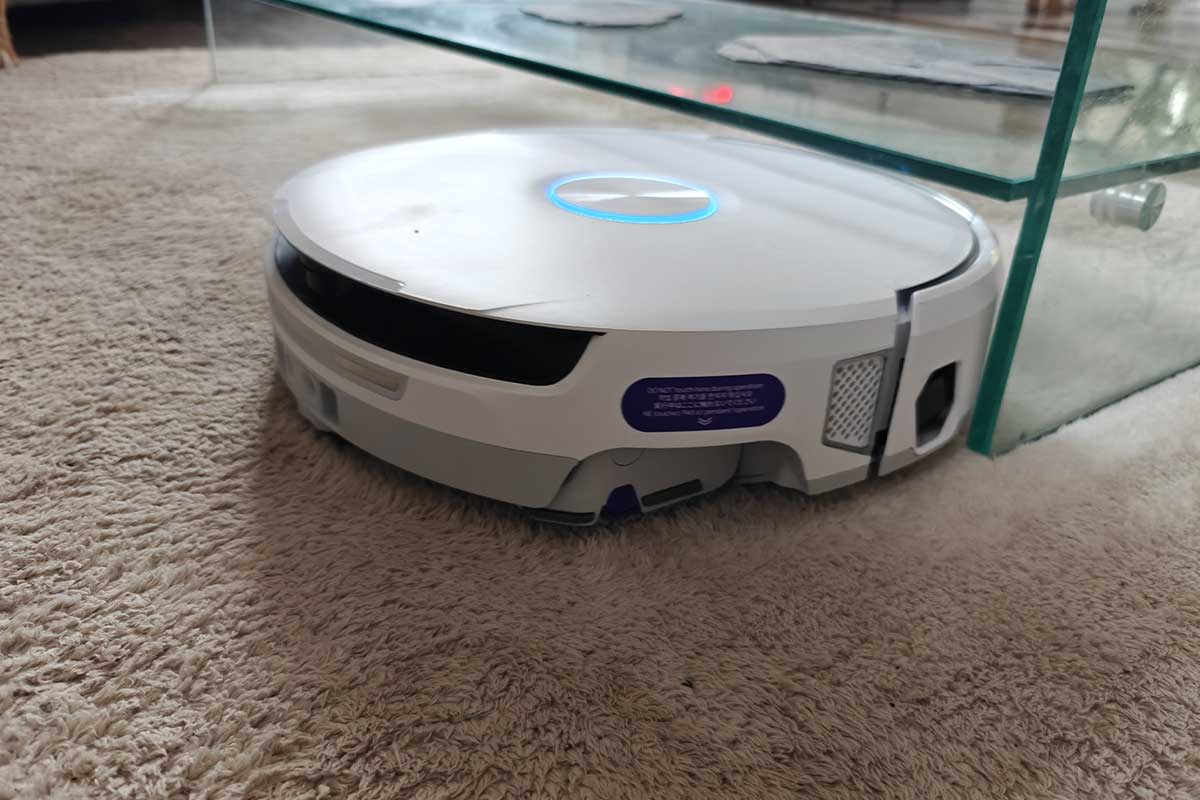 22 000 Pa. Oui, j’ai bien vérifié plusieurs fois. C’est plus que certains aspirateurs à main ! Sur carrelage, le Flow avale tout : poussière, miettes, croquettes échappées, poils de chien. Mais là où il m’a vraiment bluffé, c’est sur les tapis. Grâce à la technologie CarpetFocus, le robot détecte automatiquement les surfaces textiles, augmente la pression de 182 %, et dirige le flux d’air pour atteindre la base des fibres.