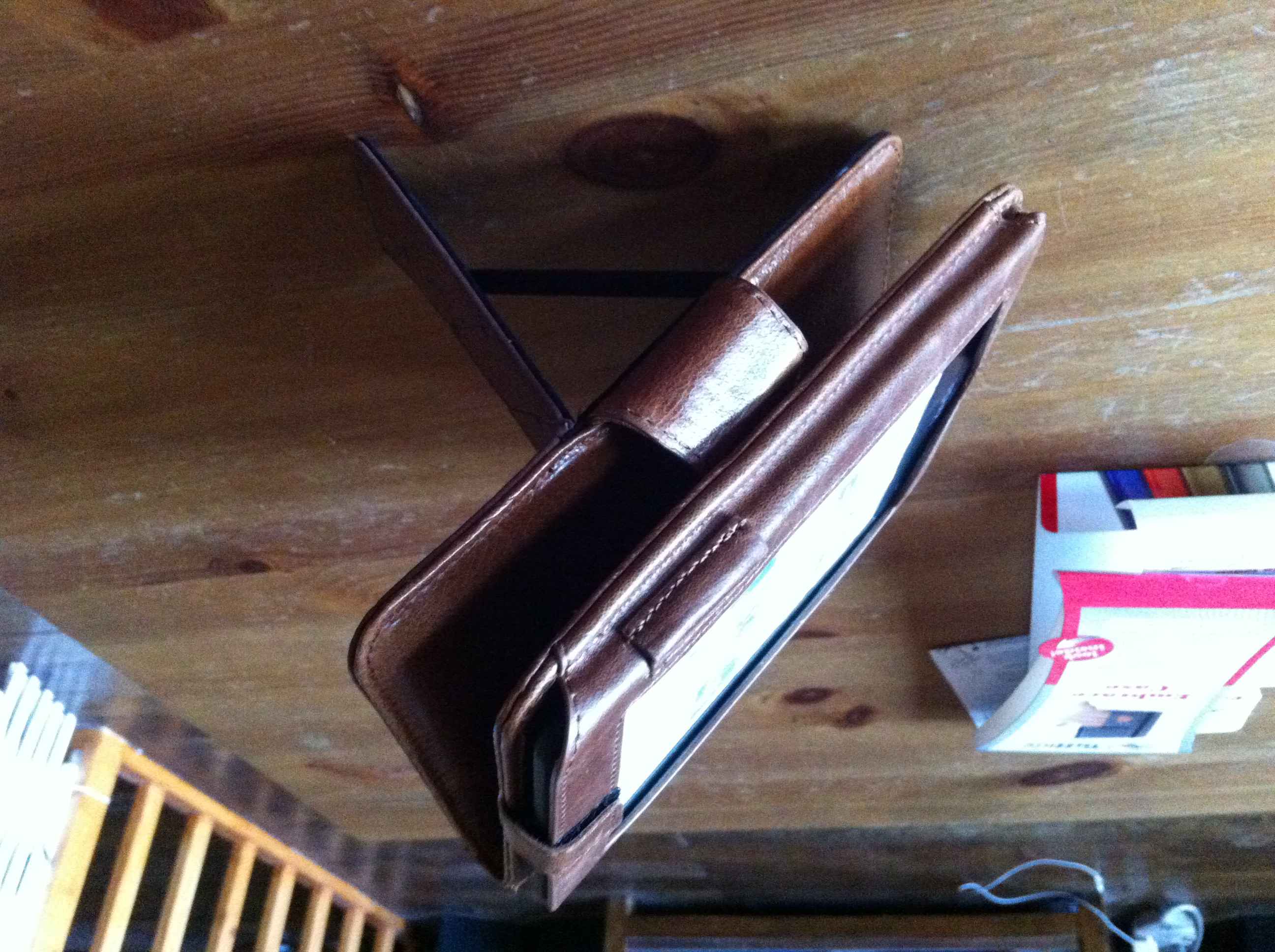 Aucun doute sur la qualité de l’accessoire. Au déballage on s’aperçoit rapidement qu’il s’agit d’un produit haut de gamme et de très bonne facture. Bien en sécurité la liseuse est maintenue par des sangles aux 4 angles, ce qui est très rassurant. La coque est équipée d’une béquille pour positionner l’appareil en mode portrait. Je ne vois pas trop l’intérêt mais pourquoi pas. Un strap intégré permet également de tenir le Kindle avec une seule main.