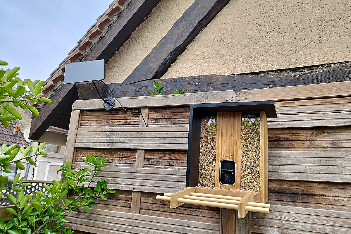 Bonne nouvelle : nul besoin d’être bricoleur chevronné pour installer la Birdfy. J’ai vissé le support sur un grand poteau de bois orienté plein sud, à deux mètres du sol. Le panneau solaire est orientable, et il capte très bien la lumière, même par temps nuageux. Ensuite, j’ai simplement branché le câble et connecté la mangeoire au Wi-Fi via l’application Birdfy. En moins de dix minutes, tout fonctionnait. Petit conseil : ne l’installez pas trop loin de votre box, la connexion Wi-Fi doit être stable. J’ai eu le droit à ma première notification à peine quelques minutes après l’installation : un pigeon curieux et probablement affamé venait déjà inspecter les lieux. Franchement, émotion garantie !