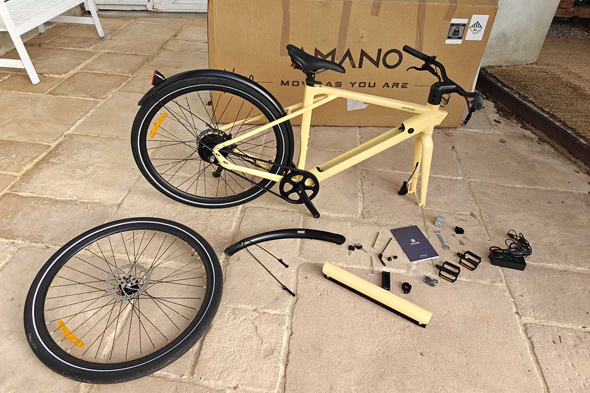 Quand le carton est arrivé devant ma porte, je me suis tout de suite dit que ce vélo avait du caractère avant même d’avoir roulé un mètre. L’emballage est soigné, chaque élément bien calé, comme une pièce de collection que l’on ne voudrait pas égratigner. En ouvrant, j’ai découvert le cadre en aluminium aux finitions lisses, sans la moindre soudure visible, avec un câblage complètement dissimulé.