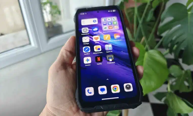 Première étape : le brancher. Avec une batterie de 20 000 mAh, il faut du sérieux pour la recharger. Heureusement, Blackview fournit un chargeur 120 W super fast charging qui redonne rapidement vie au mastodonte. En moins d’une heure, j’avais déjà une autonomie colossale. L’installation est fluide : Android 15 avec la surcouche DokeOS 4.5 (et même déjà annoncée 4.2 pour les prochaines mises à jour) se lance sans accroc. Configuration des comptes, transfert des applis, tout se fait aussi simplement que sur n’importe quel smartphone.