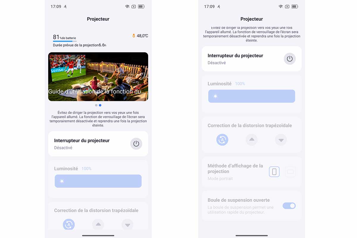 • Le projecteur reste limité en luminosité comparée à un appareil dédié.