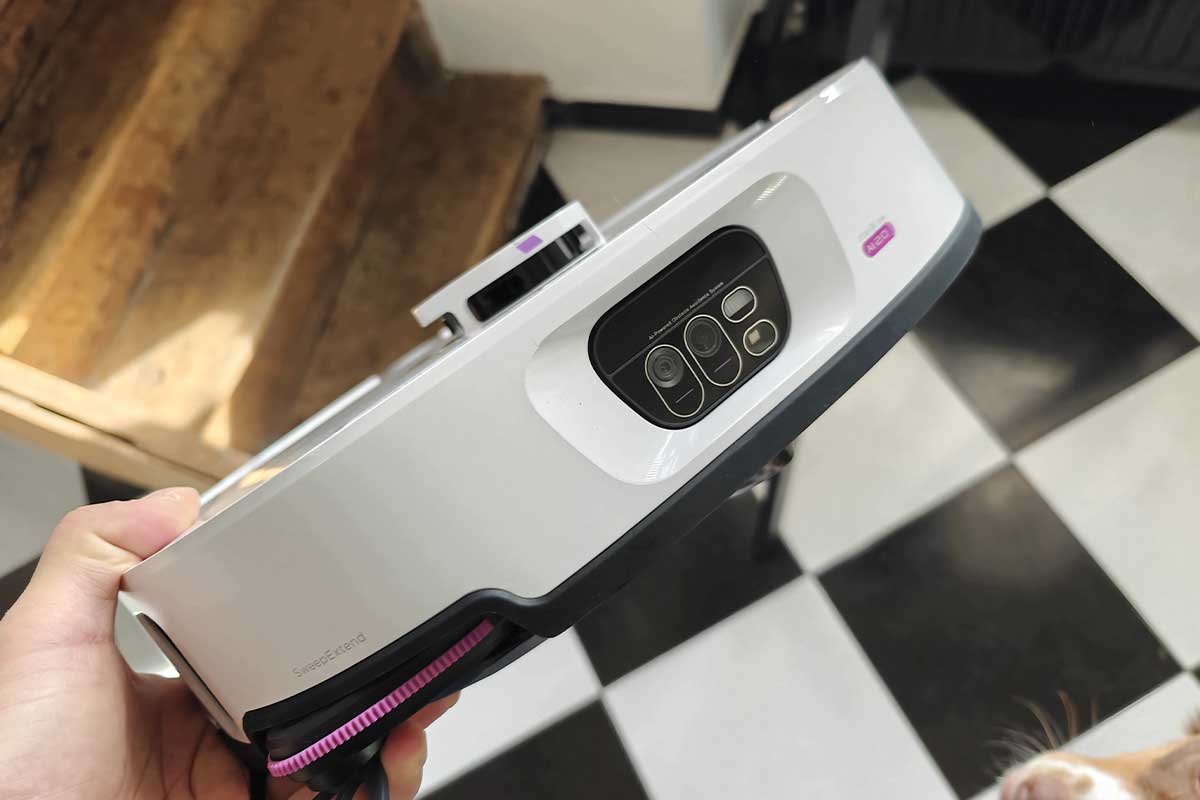 L’intelligence artificielle est redoutable. Le robot reconnaît les obstacles, évite les câbles, contourne les jouets et même les gamelles des animaux. Son franchissement « Allroad » jusqu’à 4,5 cm est aussi impressionnant : il grimpe sans broncher sur mes tapis épais et passe d’une pièce à l’autre sans rester coincé. Cerise sur le gâteau : il détecte les zones sales et repasse automatiquement dessus. Une vraie tête pensante sur roulettes. C’est un peu surprenant lors des cycles IntelliView, car il repasse à certains endroits de manière un peu désordonnée. En réalité, il « sait » exactement les endroits qu’il doit refaire pour que la totalité du sol soit propre.