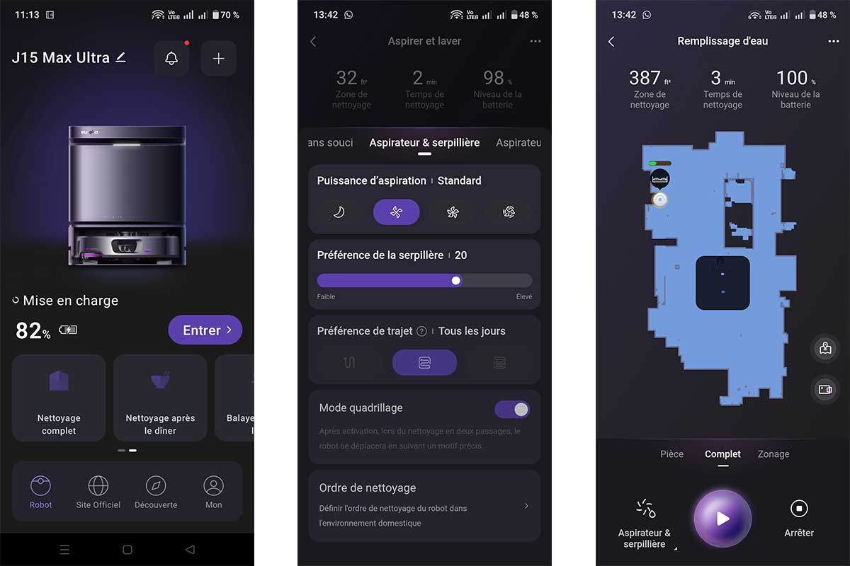 Avec une chienne et deux chats à la maison, les poils et les miettes sont mon quotidien. Mon ancien robot peinait à suivre la cadence, se coinçait sous les meubles ou avalait les fils comme des spaghettis. Le J15 Max Ultra promettait de résoudre ces problèmes avec sa technologie anti-emmêlement, son IA IntelliView 2.0 capable de reconnaître 200 objets, et sa puissance d’aspiration hors norme. Il fallait que je voie ça par moi-même. Et, je dois reconnaître que l’idée d’un aspirateur qui aspire et lave en même temps, est toujours un gain de temps pour moi !