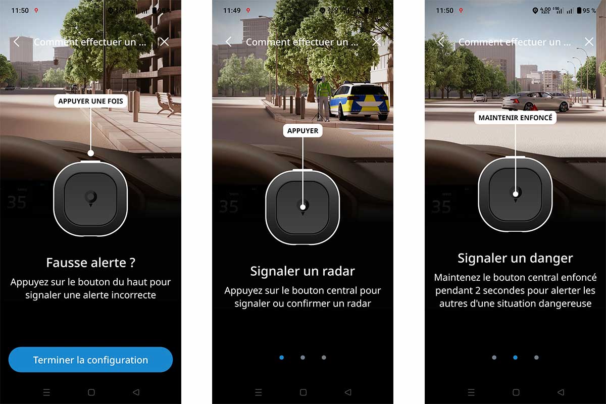 L’installation est un jeu d’enfant. Je colle le support adhésif sur le tableau de bord, je pose le Tom by TomTom dessus grâce à son aimant et je le relie une première fois à mon téléphone via Bluetooth. L’application TomTom se télécharge en quelques secondes et propose immédiatement de synchroniser les alertes. Une fois associé, le Tom démarre automatiquement dès que je prends la route. Pas besoin d’ouvrir l’application à chaque trajet. Pour ma part, c’est un vrai confort. Je craignais un paramétrage complexe, mais tout est en réalité très intuitif. Brancher, coller, connecter et rouler.