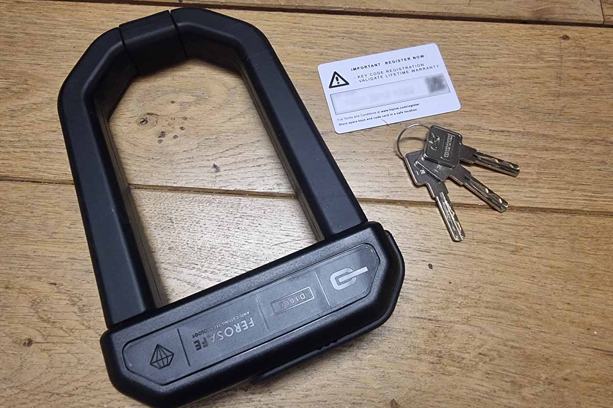 Sa surface extérieure caoutchoutée prévient les rayures sur le cadre du vélo. Grâce à son système de double verrouillage à profil carré, doté de deux languettes, le temps d’attaque requis est doublé. L’antivol est livré avec trois clés codées de haute qualité. Il est également possible d’enregistrer le programme de clé et d’obtenir des clés de remplacement. Le joint de clé caoutchouté résistant aux intempéries protège contre les éléments, tandis que sa conception festonnée facilite l’accès, même avec des gants. Enfin, la conception intégrée de l’anse et du corps permet une action de verrouillage en douceur et une conduite sans cliquetis.