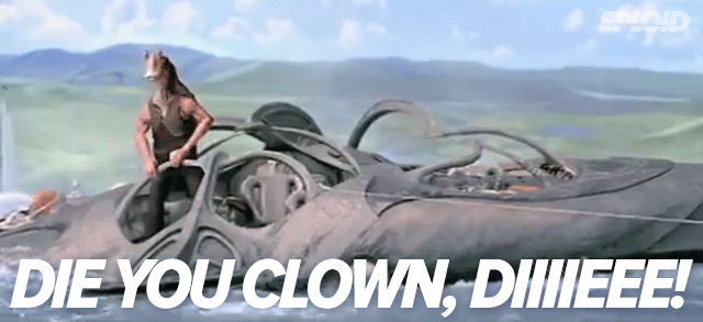 Un petit rappel s’impose – Jar Jar Binks est un Gungan, une espèce d’humanoïde amphibien qui vit dans les eaux de la planète Naboo et qui apparaît dans le premier chapitre du prequel. C’est aussi le personnage le moins populaire de Star Wars. Le Urban Dictionnary n’hésite pas à le définir comme le personnage le plus détesté de la saga allant jusqu’à le qualifier de « bad-trip sous acide de George Lucas ».