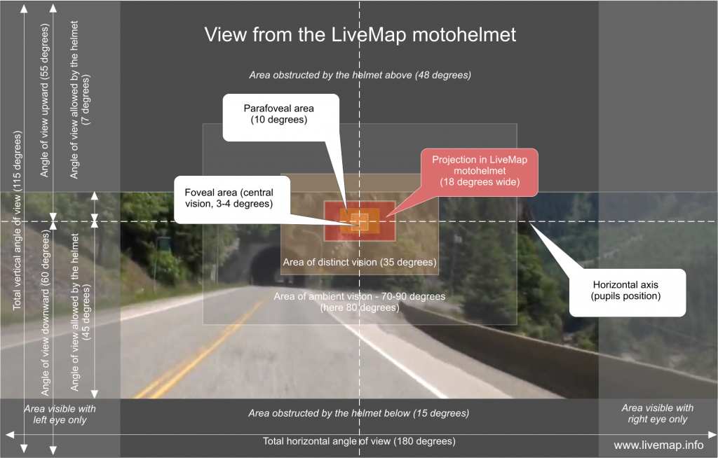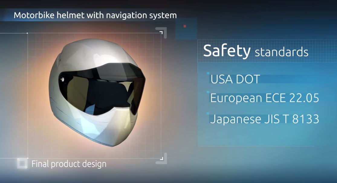 Le casque à commande vocal embarquera un affichage tête haute à réalité augmentée pour afficher une image translucide projetée directement sur la visière (le même système que les casque des pilotes d’avions de chasse F-35). Il intégrera également des lentilles asphériques, un accéléromètre, un gyroscope, une boussole numérique et deux batteries au lithium de 3000 mAh ainsi qu’un capteur de luminosité pour régler le contraste de l’image en fonction de l’éclairage. Le poids total ne devrait pas dépasser les 1.4kg.