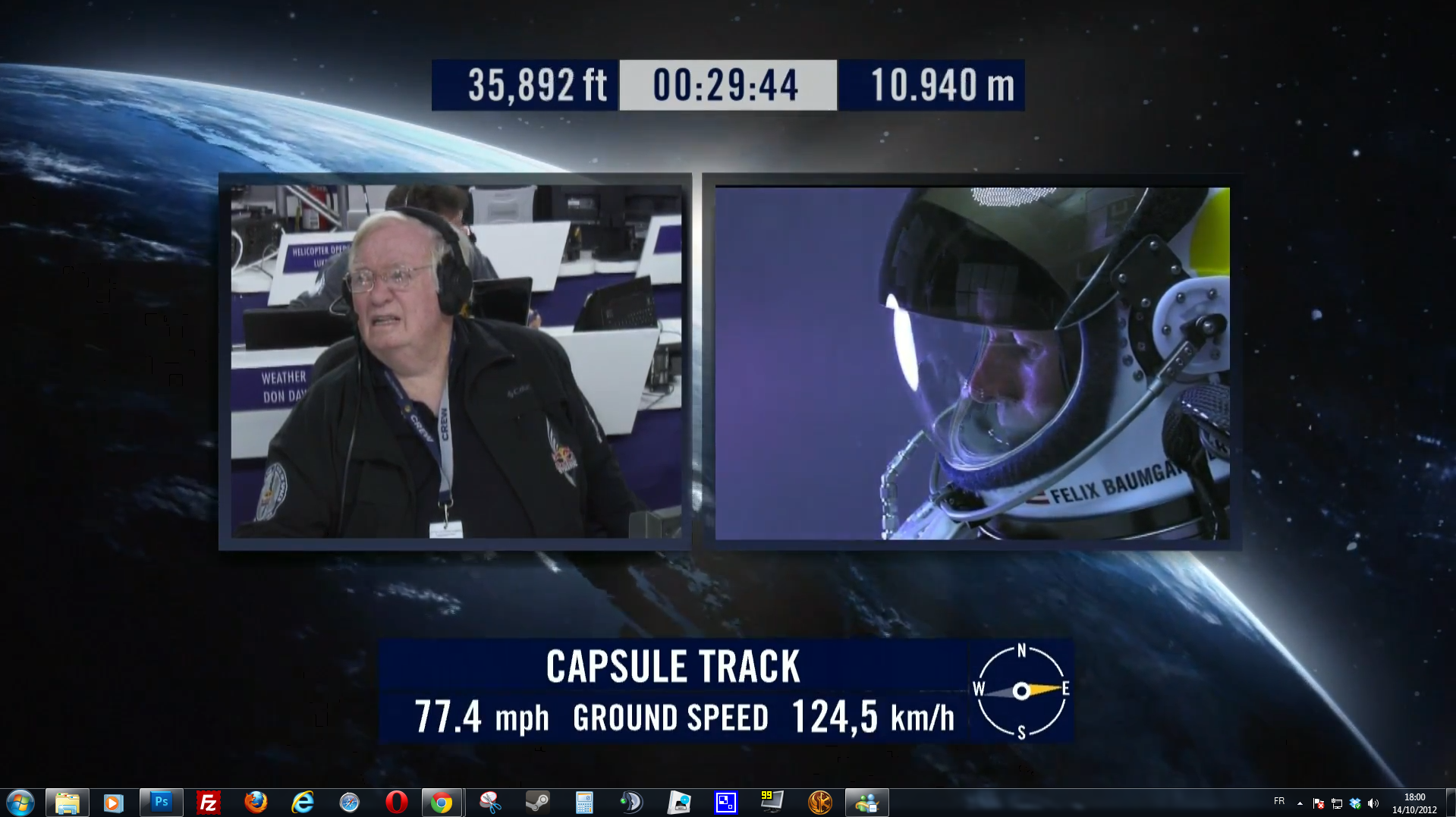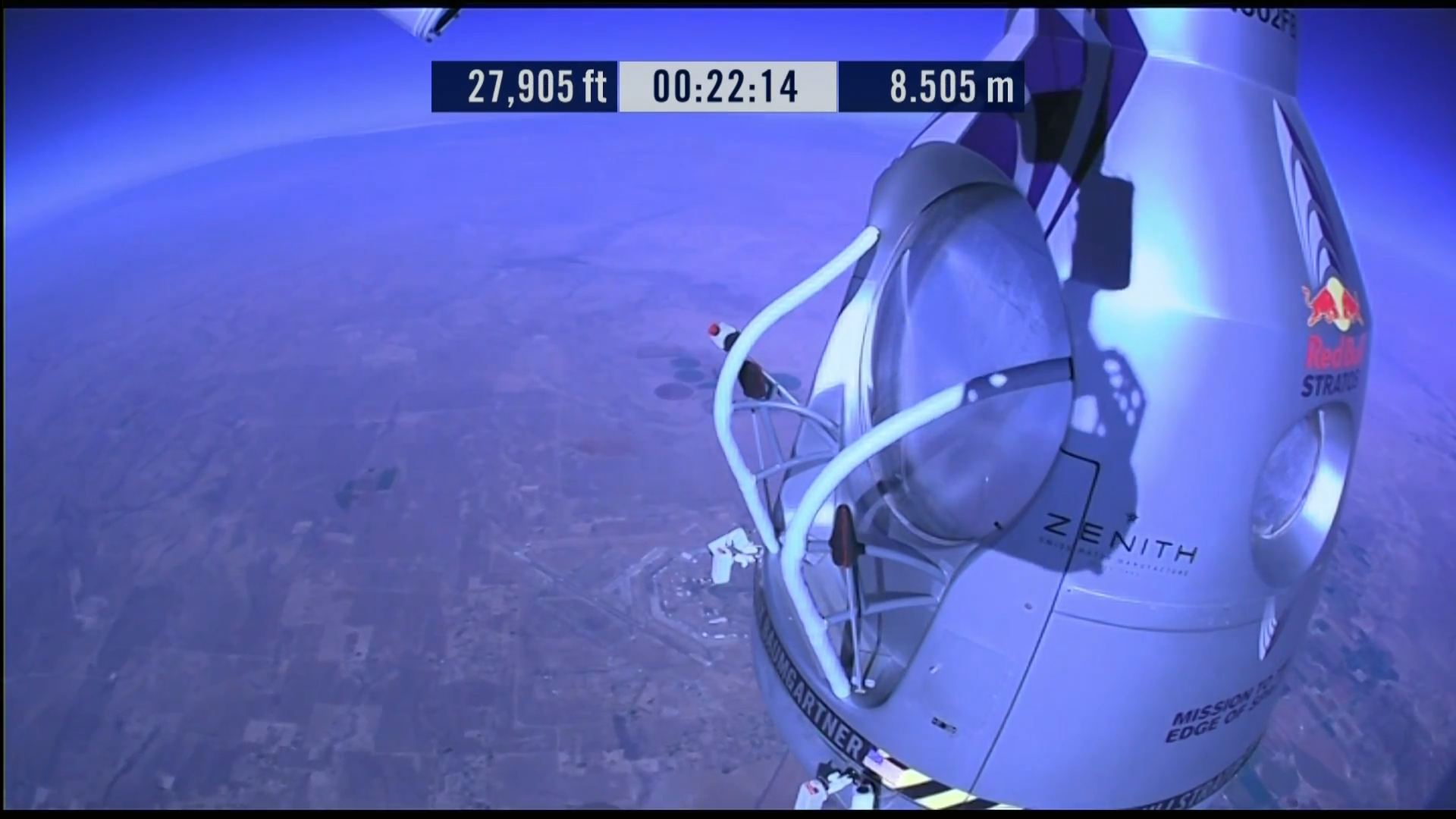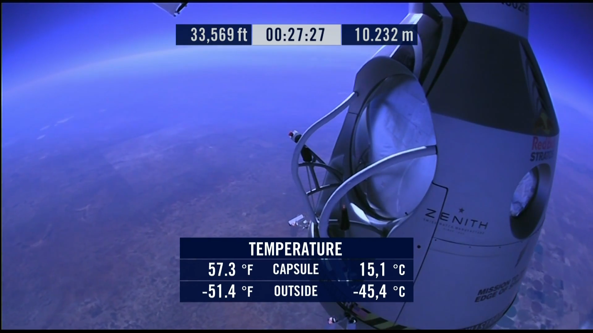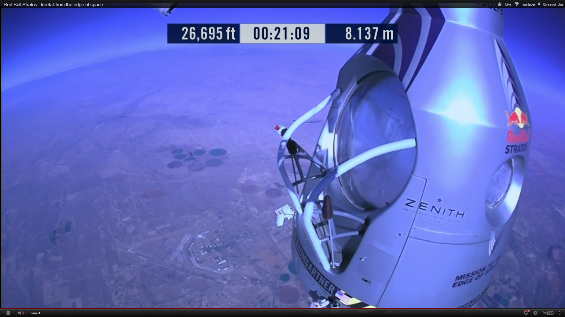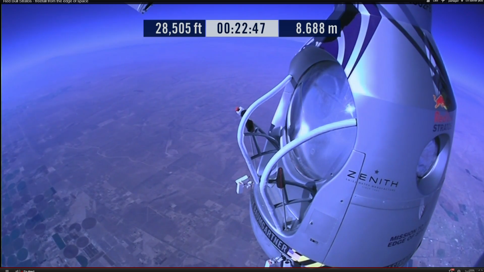 Aujourd’hui, Red Bull dévoile une superbe vidéo HD filmée sous plusieurs angles et intégrant de nombreuses données de la mission (Altitude, vitesse, accélération gravitationnelle, rythme cardiaque etc…)