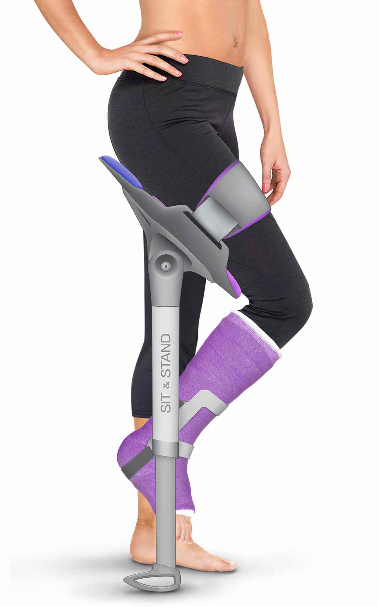 L’appareil est constitué d’une articulation au niveau de la fixation et d’une assise fixée à la tige de la béquille. Il permet de diminuer les mouvements de la jambe tout en mettant à contribution le fessier et le haut de la cuisse et surtout, supporte totalement le poids de la jambe qui est maintenue par des straps.