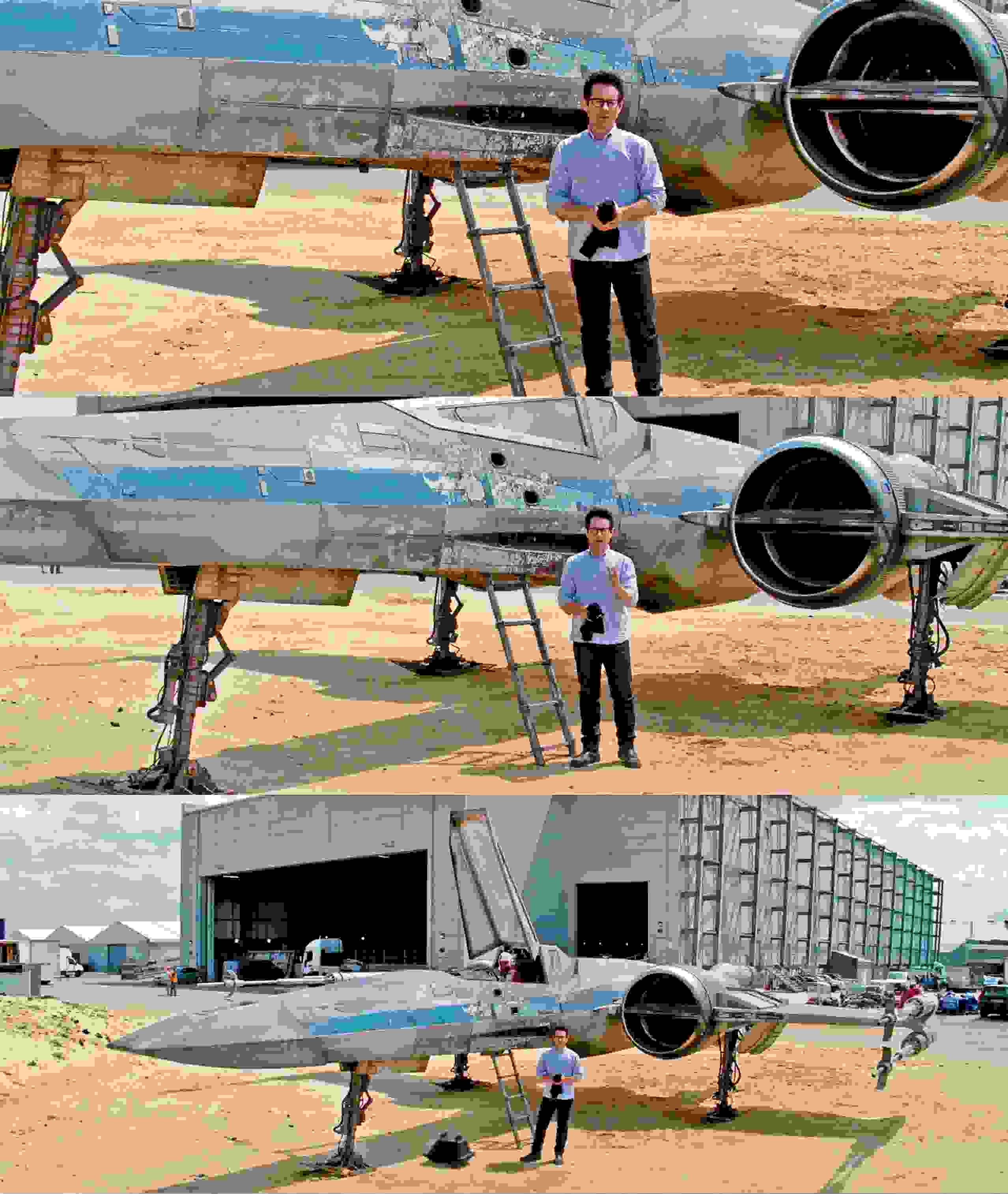 JJ Abrams dévoile le mythique vaisseau spatial des rebelles, le X-Wing, sur le plateau de Star Wars VII.