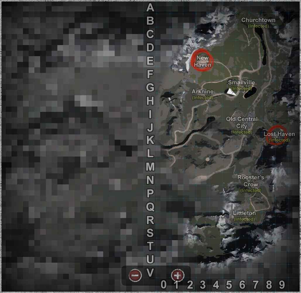 - Retrouver ses partenaires – Trouvez un point central entre vos deux positions sur la map (en dehors des villes ou des villages). Ou encore plus simple, utilisez la carte ci-dessous et donnez-vous RDV à l’aide des coordonnées. Quand il fait nuit, vous pouvez vous faire des signes avec une torche si vous en possédez une, mais soyez prudent. D’autres pourraient également les voir…